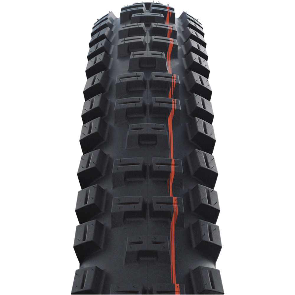 Schwalbe Big Betty wykorzystuje zaawansowaną konstrukcję Super Ground, zaprojektowaną do uniwersalnej jazdy na różnych trasach i typach nawierzchni. To model dedykowany dla rowerzystów ceniących sobie połączenie wytrzymałości, stabilności oraz doskonałej kontroli, który sprawdzi się zarówno podczas intensywnych treningów, jak i w ekstremalnych warunkach terenowych. Zamontowana na tylnym kole, świetnie uzupełnia zestaw w połączeniu z oponą Schwalbe Magic Mary na kole przednim, tworząc idealną konfigurację dla wymagających rowerzystów.