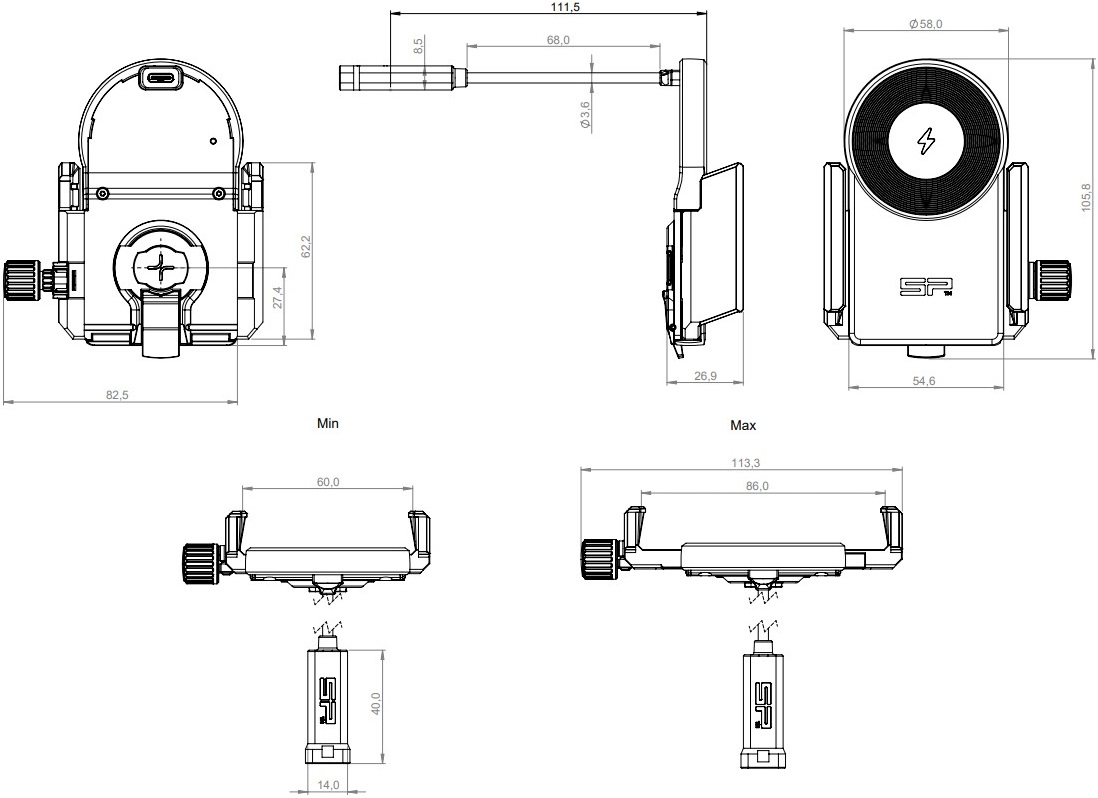 Uniwersalny uchwyt Charging Phone Clamp na telefon z możliwością ładowania indukcyjnego. Wszechstronny i stabilny uchwyt, pozwala zamontować prawie każdy model telefonu na motocyklu lub rowerze elektrycznym. Dzięki śrubie regulującej szerokość uchwytu można dostosować w ciągu kilku sekund, a urządzenie szybko i bezpiecznie zamocować. Uchwyt wyposażony jest w ładowarkę bezprzewodową. Wystarczy zasilić ładowarkę indukcyjną za pomocą silnika, akumulatora roweru elektrycznego lub powerbanku, aby bezprzewodowo naładować telefon. Od tej pory rozładowany telefon podczas wyprawy jest tylko przeszłością.