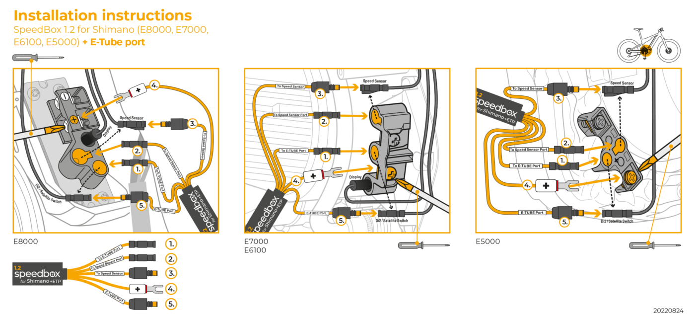 Wariant „+port E-Tube” przeznaczony jest dla e-rowerów bez wolnego portu E-Tube – zazwyczaj e-rowerów z jednym z tych komponentów: