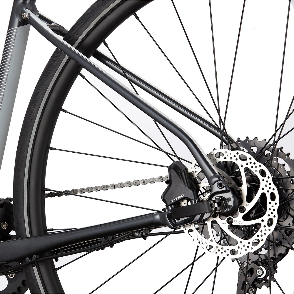 Za bezpieczne i szybkie wytracanie prędkości odpowiadają hamulce Tektro z regulacją odległości klamki od gripa, aby nawet osoby z małymi dłońmi nie miały problemu z dosięgnięciem.