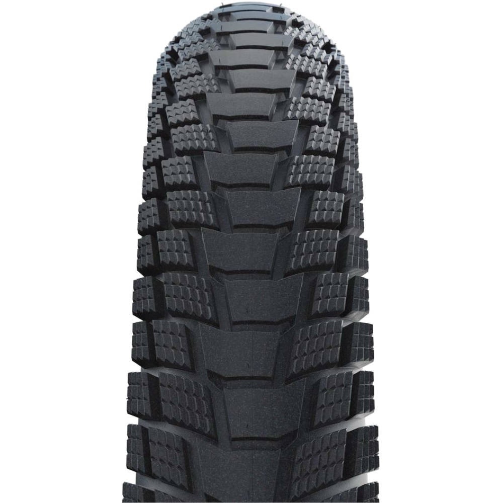 Zwieńczeniem opony cargo Schwalbe Pick-Up jest odblaskowy pasek dodany po jej bokach. Ten bardzo użyteczny dodatek w warunkach miejskich spowoduje, że w mroku lub złych warunkach atmosferycznych kierownicy łatwiej Cię zauważą na drodze.