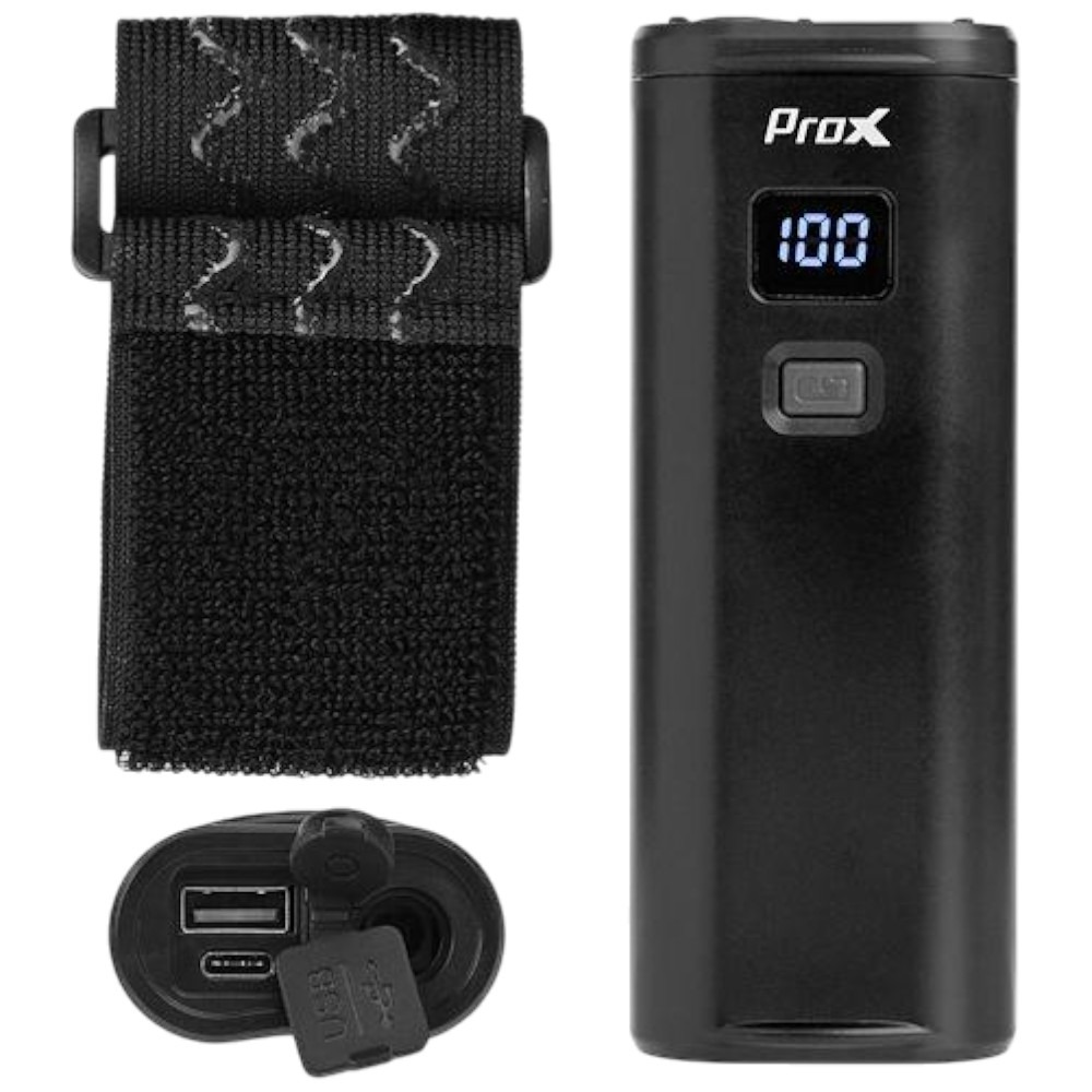 W zestawie z lampką przednią ProX Kastor II Hi Power znajduje się plastikowy uchwyt na kierownicę z pełną regulacją 360°, uchwyt w standardzie GoPro oraz kabel USB-C do ładowania. Całość została zapakowana w estetyczne pudełko producenta, które chroni produkt w trakcie transportu. To kompletny zestaw oświetlenia rowerowego, który sprawdzi się zarówno w jeździe miejskiej, jak i podczas długich wypraw terenowych.