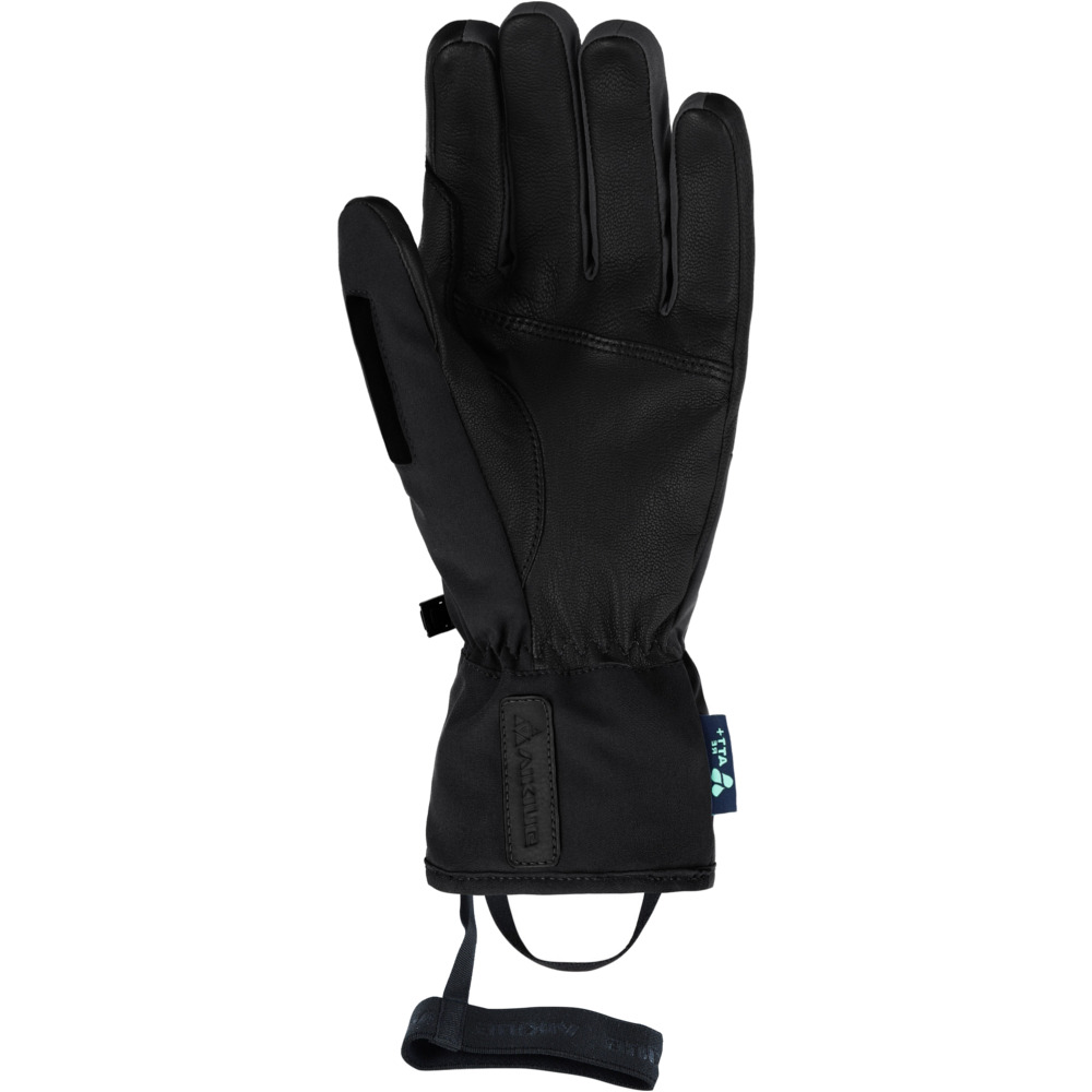 Materiał zewnętrzny to elastyczny softshell Rhine Flex połączony z naturalną kozią skórą w obszarach dłoni — tam, gdzie potrzeba najwyższej odporności na ścieranie i dobrego chwytu. Skóra zwiększa trwałość i pewność chwytu przy trzymaniu kijków czy chwytaniu przeszkód. Reszta rękawicy pozostaje lekka i elastyczna, co pozwala na precyzyjne ruchy palców.