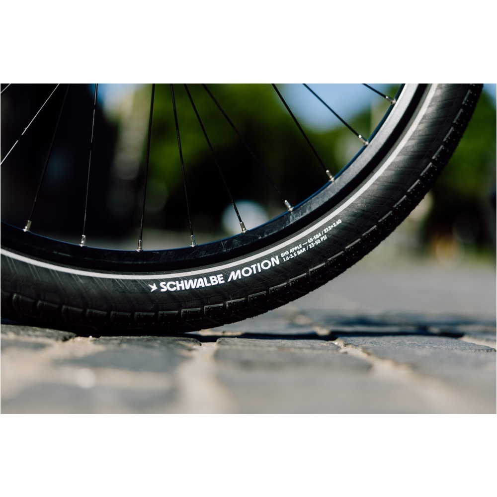 Opona rowerowa Schwalbe Motion Big Apple to nowa odsłona legendarnych modeli Big Ben i Big Apple, stworzona z myślą o maksymalnym komforcie jazdy w każdych warunkach. Dzięki dużej objętości i możliwości jazdy na niskim ciśnieniu powietrza doskonale tłumi nierówności terenu, eliminując potrzebę stosowania skomplikowanego zawieszenia. Opona płynnie toczy się zarówno po asfalcie, jak i po leśnych ścieżkach, co czyni ją idealnym wyborem do codziennych dojazdów, rekreacyjnych przejażdżek i długich weekendowych wycieczek.