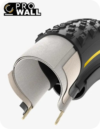 Konstrukcja ProWall z oplotem 60 TPI zapewnia dodatkową ochronę ścianek bocznych, zwiększając odporność na przebicia i poprawiając stabilność przy niskim ciśnieniu. Wzmocnienie nylonową warstwą podnosi odporność na przecięcia, a jednocześnie stabilizuje oponę, gwarantując pewne prowadzenie w każdym terenie.