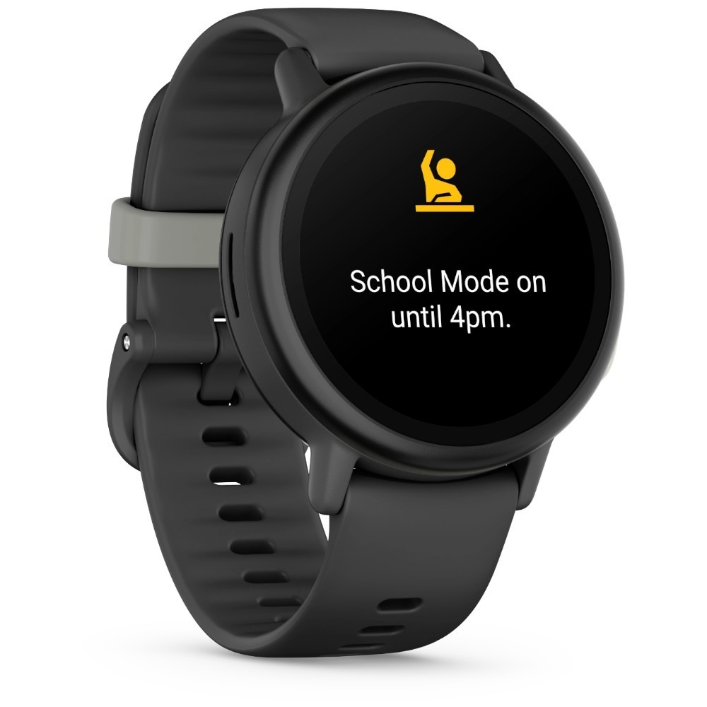 Dzięki trybowi szkolnemu zegarek automatycznie wycisza powiadomienia, pomagając dziecku skupić się na nauce. Możliwość zapisania nawet 50 zatwierdzonych kontaktów daje rodzicom pełną kontrolę nad tym, z kim dziecko się komunikuje. Garmin Bounce 2 to również centrum nauki i zabawy – oferuje quizy, gry oraz ćwiczenia ruchowe, które wspierają rozwój intelektualny i fizyczny najmłodszych.