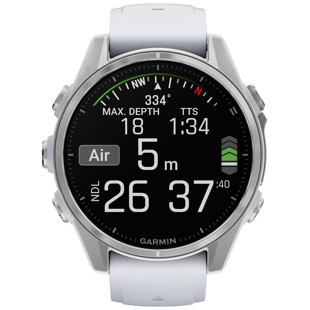 Solidna i odporna konstrukcja zegarka została przystosowana do nurkowania, a szczelne przyciski, tytanowy bezel oraz metalowa osłona czujnika gwarantują trwałość w każdych warunkach. Jasny wyświetlacz AMOLED z odporną na zarysowania soczewką zapewnia doskonałą czytelność, a całość spełnia amerykańskie standardy wojskowe odporności na wstrząsy, temperaturę i wodę.