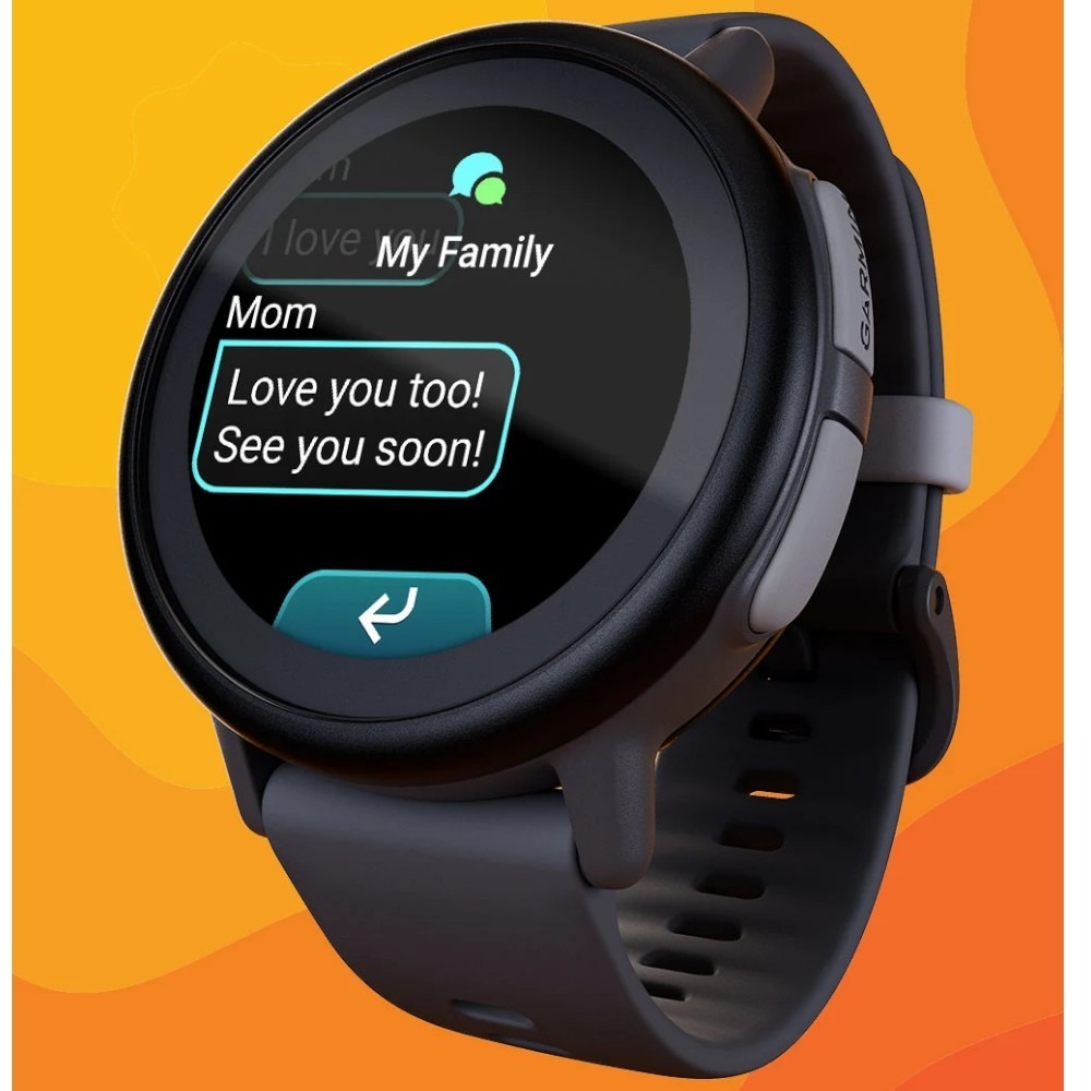 Z aktywną subskrypcją Garmin Jr. możesz wysyłać wiadomości tekstowe bezpośrednio na smartwatch Bounce 2 swojego dziecka. Mali użytkownicy mogą odpowiadać, tworząc własne wiadomości z pełnej klawiatury, dodając emotikony lub dźwiękowe emotikony, a kontakt możliwy jest wyłącznie z zatwierdzonymi numerami lub w rodzinnych czatach grupowych.