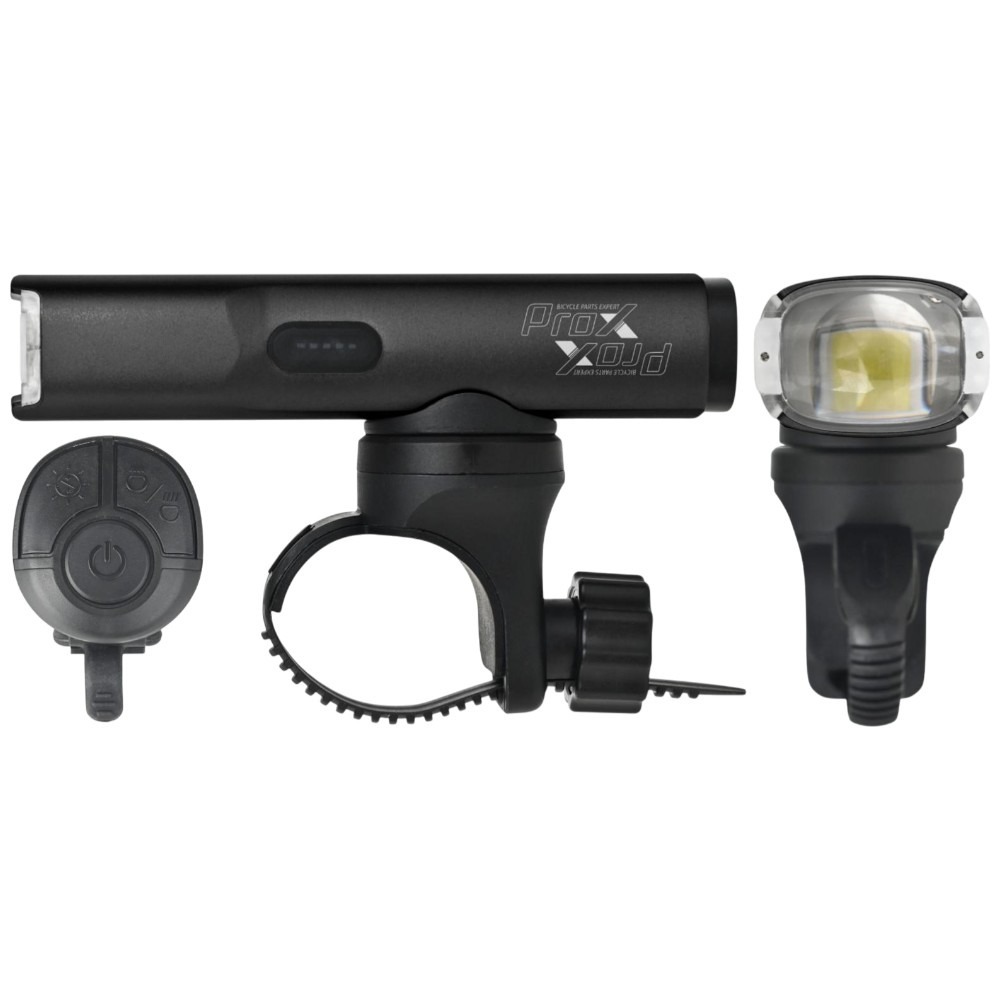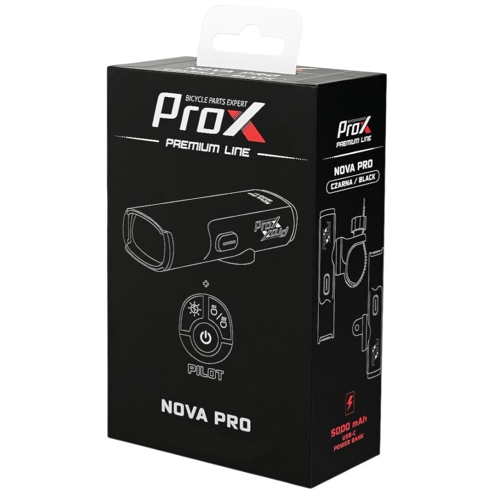 ProX Nova Pro wyróżnia się inteligentnymi funkcjami, takimi jak MEMORY MODE zapamiętujący ostatni tryb, SAFE MODE automatycznie przełączający na najsłabszy przy 20% baterii oraz tryb blokady LOCK MODE chroniący przed przypadkowym włączeniem w transporcie. Sterowanie ułatwia bezprzewodowy pilot, a montaż jest uniwersalny – nad lub pod kierownicą dzięki regulowanemu uchwytowi w standardzie Garmin, adapterowi Garmin/GoPro oraz gumowemu paskowi. Kompaktowa obudowa z aluminium, PC/ABS i nylonu waży zaledwie 179 g (z uchwytem) i ma wymiary 116 x 34 x 29 mm. Wodoszczelność IPX4 gwarantuje odporność na deszcz.