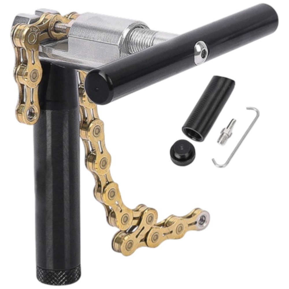 Wymienny pin oraz chowany pręt w ergonomicznej rączce ułatwiają pracę w każdych warunkach – od warsztatu po trasę. Wykonany z wysokiej jakości stali chromowej i lekkiego aluminium, waży tylko 135 g, co czyni go poręcznym towarzyszem podczas wyjazdów. To profesjonalny skuwacz rowerowy, który oszczędza czas przy wymianie łańcucha.