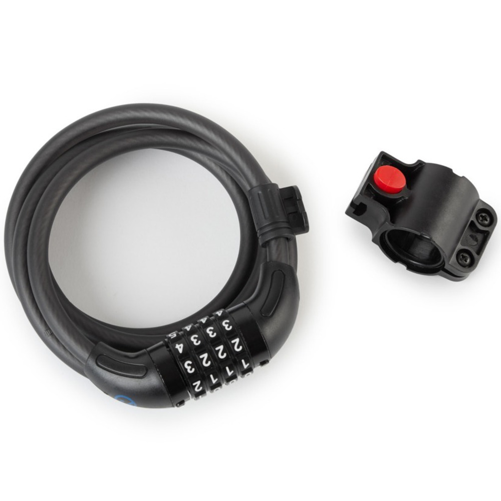 Zapięcie do roweru Accent Code Lock zabezpieczane jest za pomocą indywidualnego, samodzielnie ustawianego kodu. Blokadę cechuje bardzo gęsty i gruby stalowy splot, który zwiększa ochronę przed kradzieżą. Umieszczony został on w specjalnej, winylowej osłonie, która świetnie zabezpiecza zapięcie rowerowe przed działaniem deszczu i innych czynników zewnętrznych. Zabezpiecza ona także rower przed zarysowaniami i uszkodzeniami, a dodatkowo zwiększa komfort użytkowania. Zapięcie do roweru Accent Code Lock posiada głowicę, którą wyposażono w dodatkowe blokady, charakteryzujące się dużą odpornością na podważanie, co sprawia, że twój rower będzie jeszcze lepiej zabezpieczony. Zamknięcie dokonuje się automatycznie po połączeniu obu części zamka. W celu jego ponownego otwarcia, należy wprowadzić swój 4-cyfrowy kod. W zestawie znajduje się blokada rowerowa oraz dodatkowy uchwyt, dzięki któremu możesz przymocować zapięcie do ramy w celu łatwiejszego transportu.