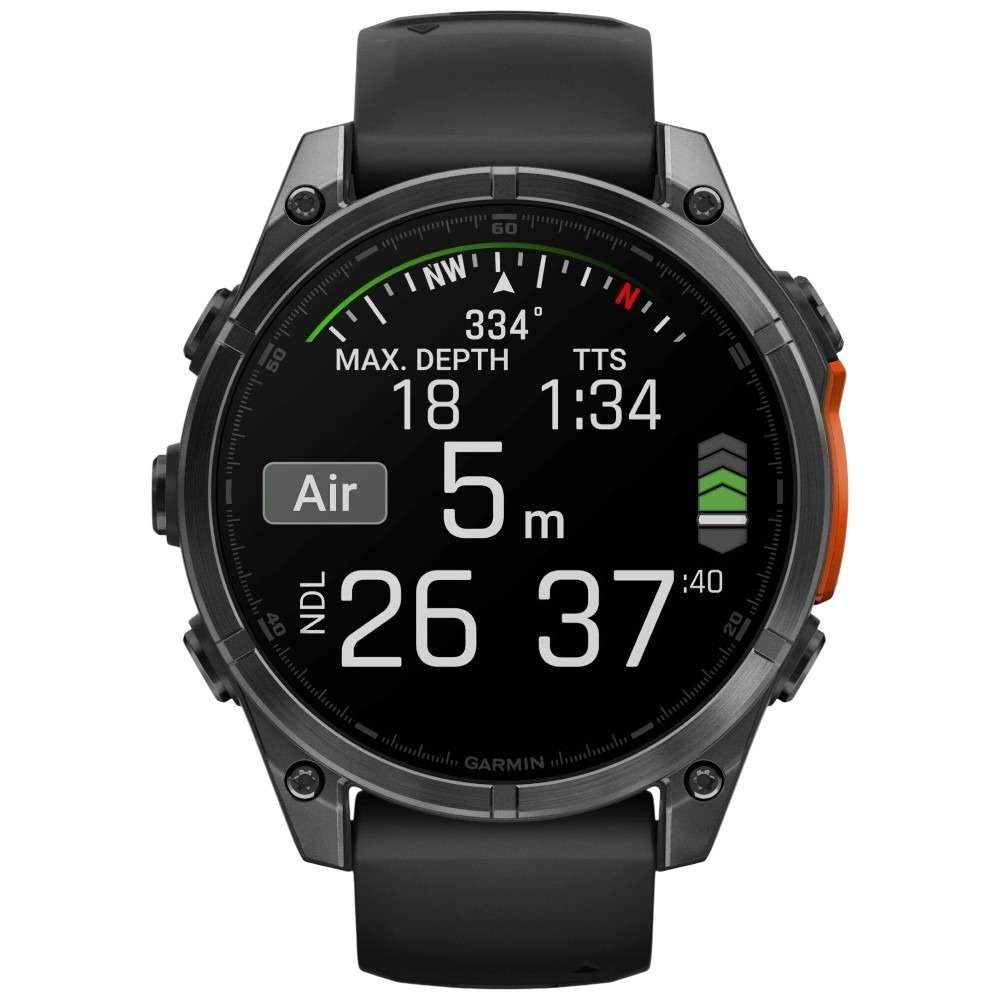 Solidna i odporna konstrukcja zegarka została przystosowana do nurkowania, a szczelne przyciski, tytanowy bezel oraz metalowa osłona czujnika gwarantują trwałość w każdych warunkach. Jasny wyświetlacz AMOLED z odporną na zarysowania soczewką zapewnia doskonałą czytelność, a całość spełnia amerykańskie standardy wojskowe odporności na wstrząsy, temperaturę i wodę.