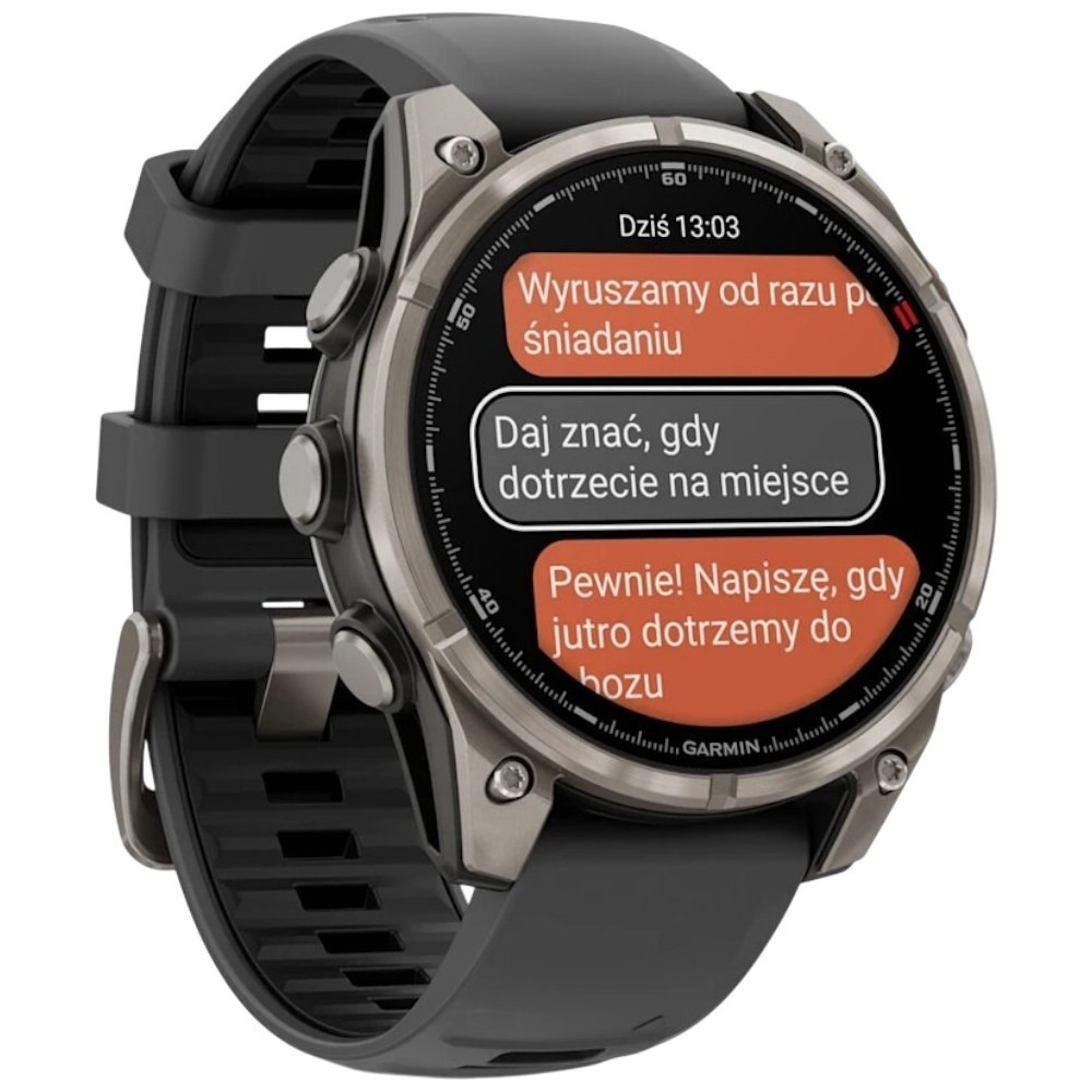 Fenix 8 Pro współpracuje z Garmin Connect, Garmin Explore i Outdoor Maps+, umożliwiając łatwą synchronizację danych, analizę postępów i zarządzanie trasami. Dodatkowo możesz personalizować tarcze zegarka, pola danych i aplikacje z poziomu smartfona, tworząc idealne narzędzie dopasowane do swojego stylu życia i celów sportowych.