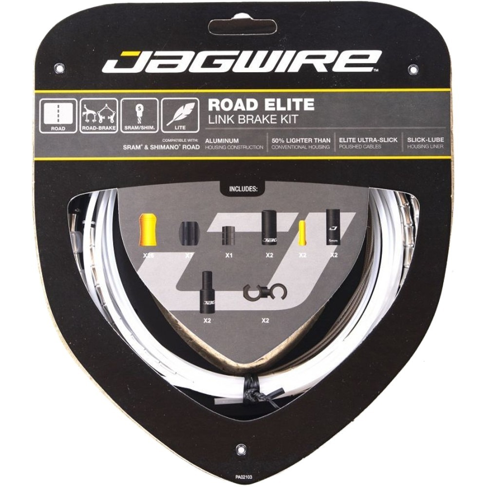 Jagwire Elite Link to innowacyjny pancerz hamulca składający się z aluminiowych koralików, które połączone ze sobą tworzą trwały i lekki pancerz. Takie rozwiązanie pozwala zredukować wagę aż o 50% w porównaniu do konwencjonalnych systemów. Długość dobierana jest przez dopasowanie ilości ogniw oraz długości wewnętrznej wkładki. Wypełnienie smarem niweluje tarcie, co w połączeniu z linką w technologi Ultra-Slick sprawia, że hamulce działają płynnie i dają pełną kontrolę nad rowerem. Zestaw został wyposażony w komplet końcówek oraz osłon i umożliwia kompleksowe odświeżenie układu hamulcowego.