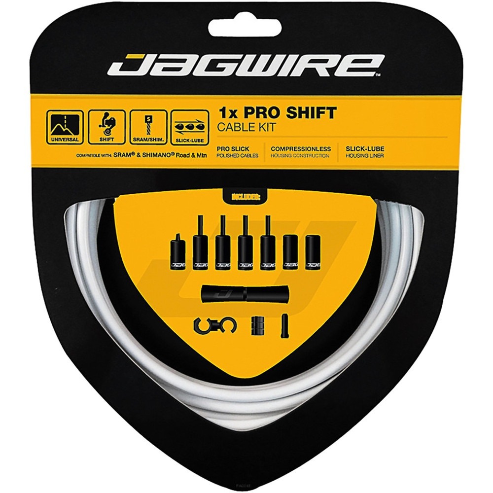 Jagwire Pro to zestaw linek i pancerzy dedykowanych do przerzutek w rowerach. Kompletny zestaw zawiera pancerz ze specjalną wkładką, która zmniejsza tarcie. W połączeniu z polerowaną linką oferuje świetną precyzję oraz szybkość zmian przełożeń. Uszczelnione końcówki oraz smar wewnątrz pancerza wydłuża trwałość zestawu i jego odporność na trudne warunki. W skład wchodzą osłony, które skutecznie chronią lakier ramy przed zarysowaniami od pancerzy w miejscu styku.