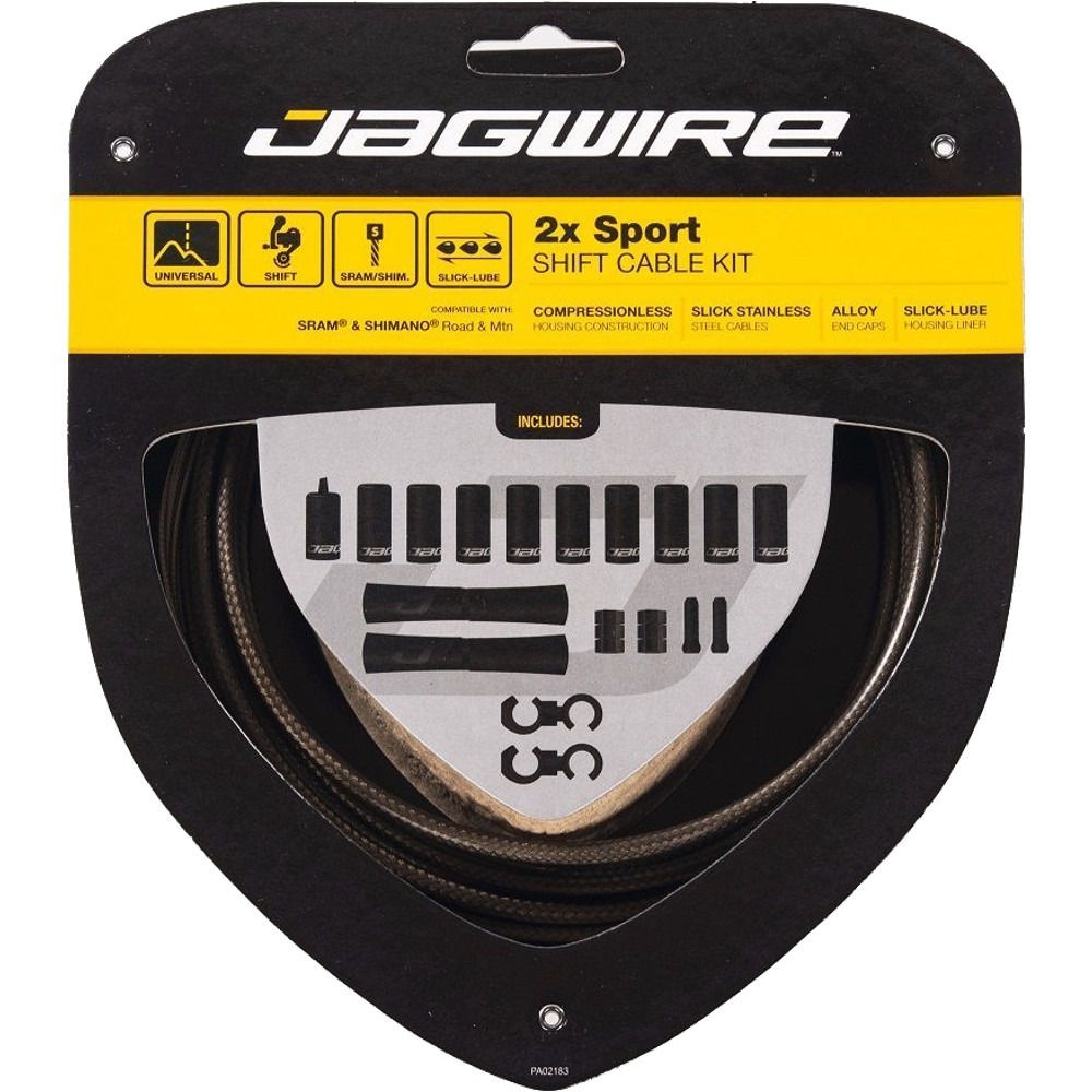 Jagwire Sport to wysokiej jakości zestaw linek i pancerzy przeznaczonych do przerzutek w rowerach. Wytrzymały pancerz został wyposażony we wkładkę wypełnioną specjalnym smarem Slick-Lube. Takie rozwiązanie w połączeniu z galwanizowaną linką daje minimalne tarcie w układzie, które przekłada się na błyskawiczne i precyzyjne działanie przerzutek. Linka ze stali nierdzewnej została wstępnie naciągnięta, dzięki czemu przerzutki nie rozregulowują się tak szybko. Jagwire Sport jest doskonałym zestawem o wysokiej jakości, który umożliwia kompleksowe usprawnienie działania przerzutek.