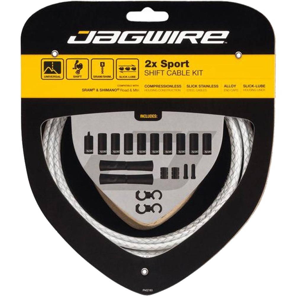 Jagwire Sport to wysokiej jakości zestaw linek i pancerzy przeznaczonych do przerzutek w rowerach. Wytrzymały pancerz został wyposażony we wkładkę wypełnioną specjalnym smarem Slick-Lube. Takie rozwiązanie w połączeniu z galwanizowaną linką daje minimalne tarcie w układzie, które przekłada się na błyskawiczne i precyzyjne działanie przerzutek. Linka ze stali nierdzewnej została wstępnie naciągnięta, dzięki czemu przerzutki nie rozregulowują się tak szybko. Jagwire Sport jest doskonałym zestawem o wysokiej jakości, który umożliwia kompleksowe usprawnienie działania przerzutek.