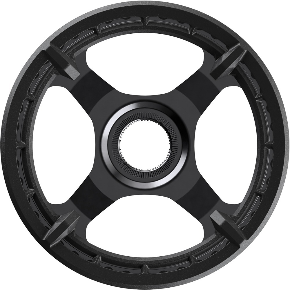 Tarcza mechanizmu korbowego Shimano CR-ET600 z podwójną osłoną łańcucha przeznaczona do rowerów elektrycznych z napędem Shimano STEPS. Model dedykowany jest do rowerów miejskich i trekkingowych z napędem 9/10/11 rzędowym.