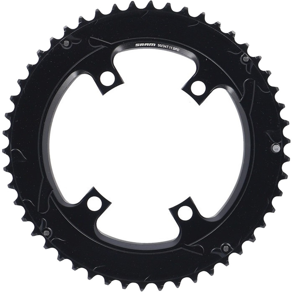 Aluminiowa zębatka do korb SRAM APEX 1 o asymetrycznym rozstawieniu otworów montażowych 110BCD. Umożliwia rozszerzenie korby jednorzędowej do napędu dwurzędowego. Została wykonana z twardego aluminium cechującego się dobrą trwałością. Wykończenie zębatki usprawniło zmiany przełożeń.