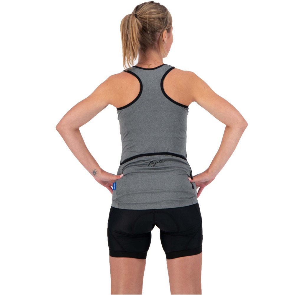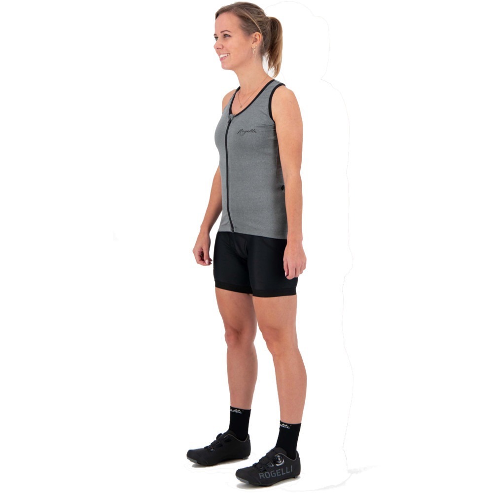 Damska koszulka bez rękawków Rogelli Abbey doskonale sprawdza się podczas letnich wypraw rowerowych. Koszulka odznacza się taliowanym, dobrze dopasowanym krojem, który zapewnia pełną swobodę ruchów podczas wykonywanych aktywności. Dla zapewnienia lepszego komfortu zastosowano także płaskie szwy, które nie uwierają oraz nie powodują podrażnień. Rogelli Abbey posiada z tyłu wygodną w użytkowaniu portójną kieszeń oraz dodatkową kieszonkę na zamek, która świetnie sprawdza się do przechowywania drobniejszych przedmiotów. Zakończenie koszulki w postaci elastycznego i szerokiego ściągacza zapobiega przesuwaniu się jej w trakcie jazdy.