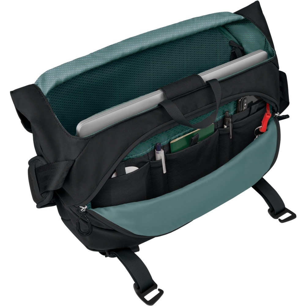 Liczne przegrody umożliwiają zachowanie porządku wewnątrz plecaka nawet przy dużej ilości przedmiotów. Dodatkowy pas piersiowy stabilizuje całą konstrukcję podczas przemierzania kolejnych kilometrów krętych ulic. Wysokie przywiązanie firmy Osprey do dopracowania najmniejszych szczegółów zaowocowało znaczną poprawą komfortu w codziennym użytkowaniu.