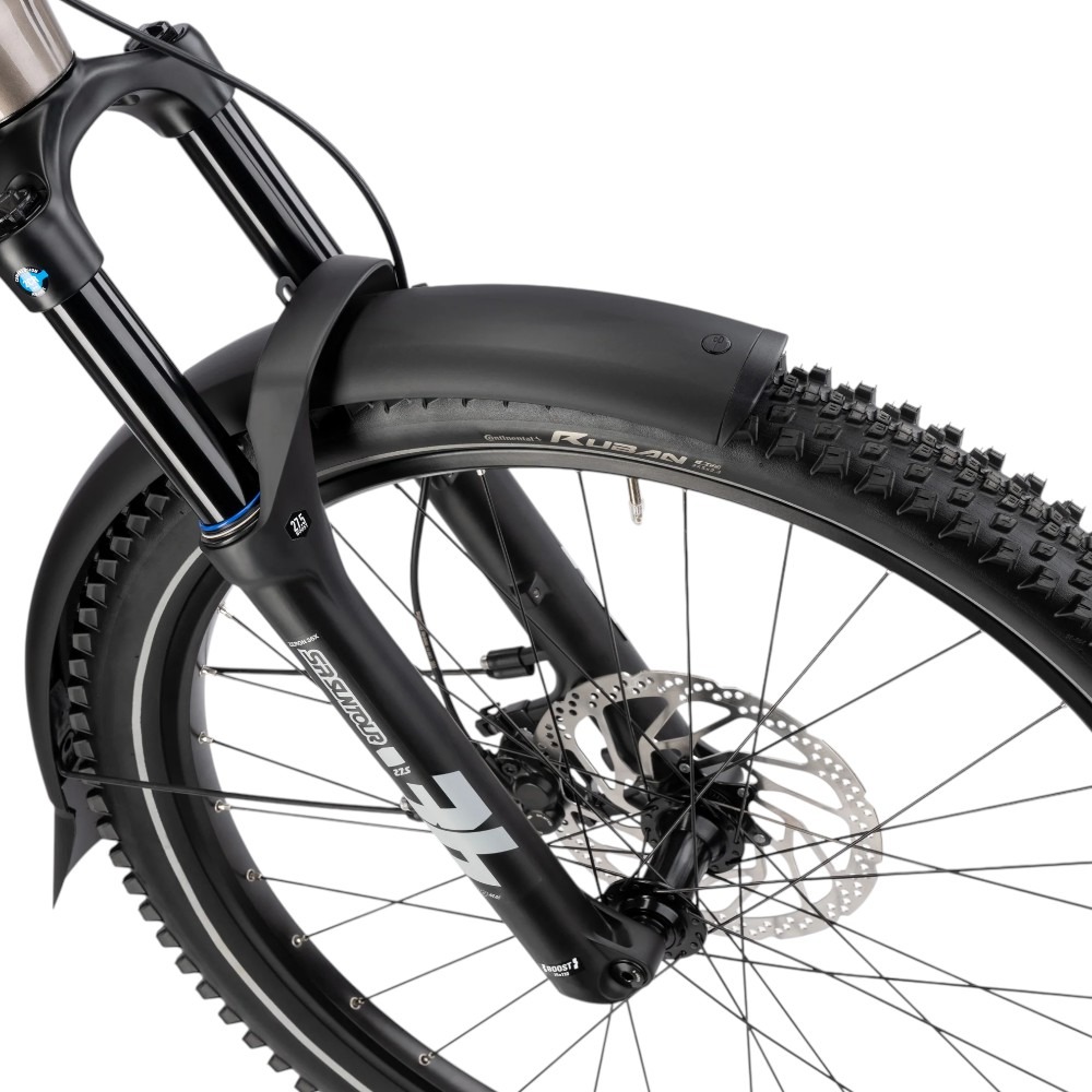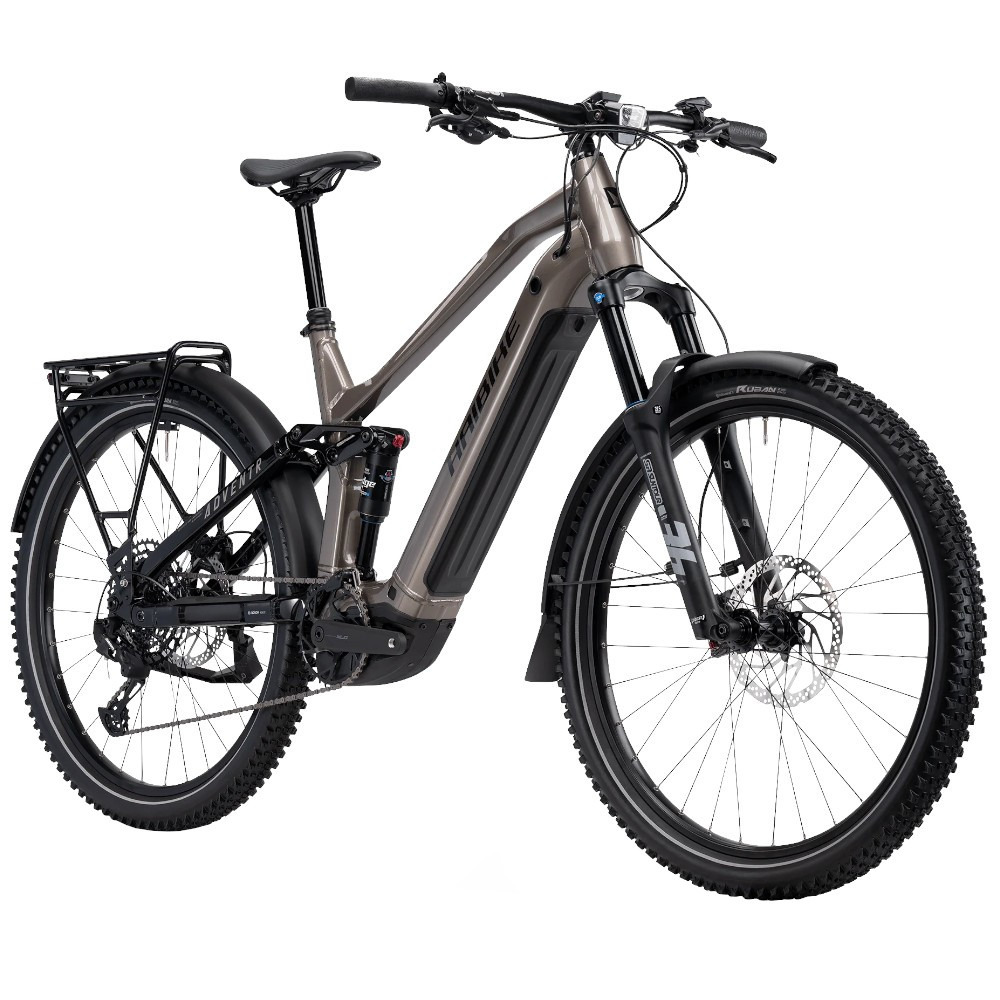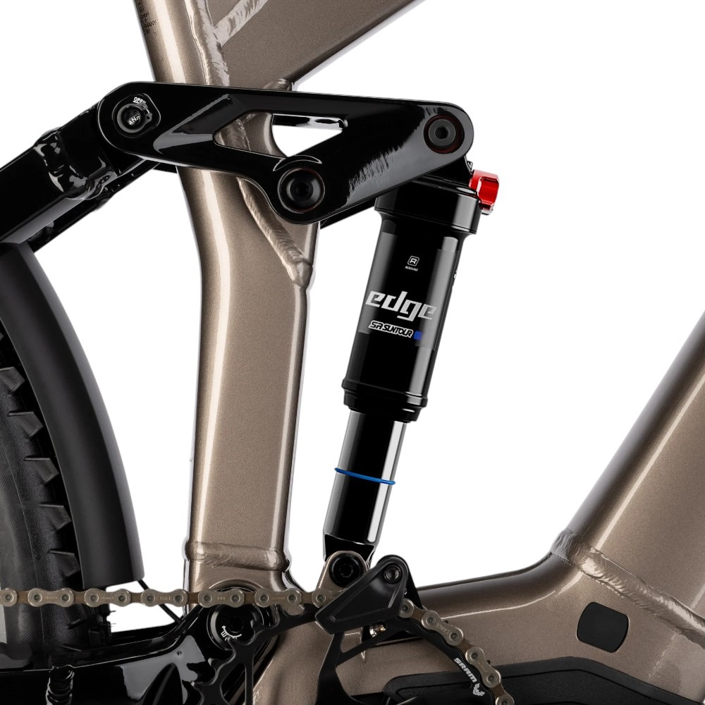 Rama roweru elektrycznego Haibike Adventr 10 High wykonana jest z wysokiej klasy aluminium, co zapewnia optymalny balans między niską wagą a trwałością. Klasyczna geometria z wysoko poprowadzoną górną rurą nadaje e-bike'owi sportowy charakter oraz zwiększa stabilność podczas dynamicznej jazdy. Haibike Adventr 10 High został wyposażony w pełne zawieszenie: z przodu pracuje amortyzator SR Suntour SF25-Zeron36X-Boost o skoku 140 mm, a z tyłu RS24 Edge X o skoku 130 mm. Takie połączenie skutecznie tłumi nierówności i pozwala pewnie pokonywać trudniejsze odcinki trasy.