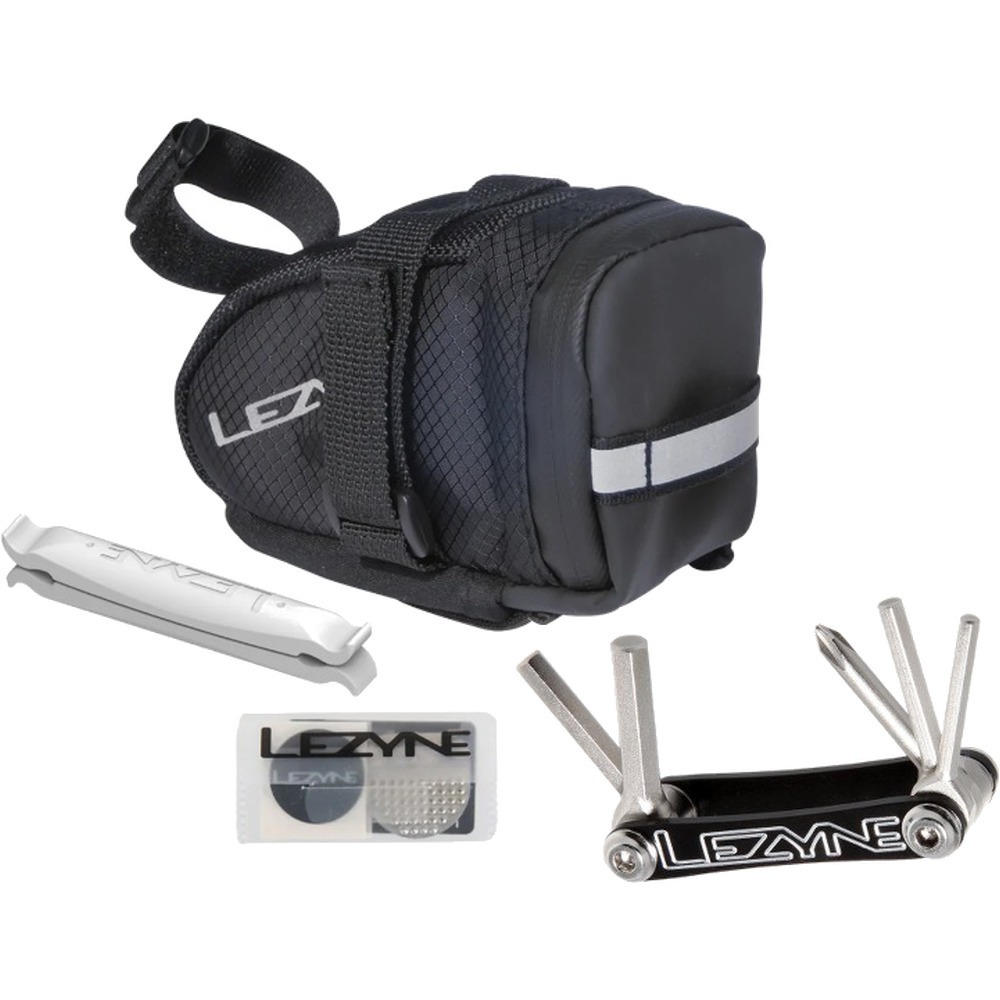 Torba Caddy S wyposażona we wszystkie potrzebne akcesoria. Zaprojektowana w kształcie klina aby jak najefektywniej wykorzytstać przestrzeń pod siodełkiem. Zbudowana jest z lekkiego i wytrzymałego nylonu, posiada dużą komorę główną i kieszeń pod spodem na multitool. Mocne paski z rzepami mocowane są do szyn siodełka, odblaskowe elementy zapewnią widoczność po zmoroku. Zamek błyskawiczny jest wodoodporny. Dwie łyżki do opon, multitool V5, 1 zestaw do łatania dętek.