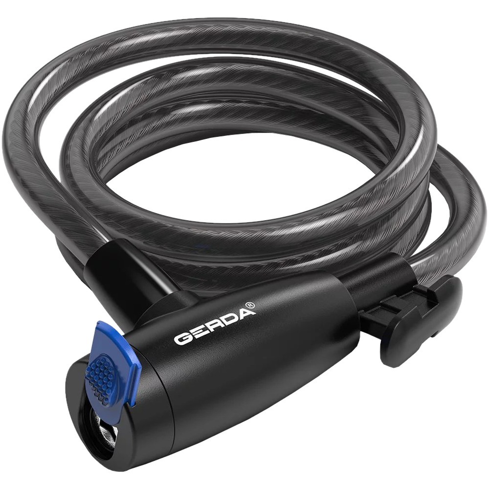 Razem z zapięciem otrzymujemy dwa klucze symetryczne, które umożliwiają łatwe otwieranie zamka nawet w ciemności. Przesuwana zatyczka chroni przed zabrudzeniem otworu zamka. Linka sama powraca do spiralnego kształtu, dzięki temu zajmuje mało miejsca, a podczas transportu można ją wsadzić w dołączony uchwyt, który przymocujemy na ramie.
