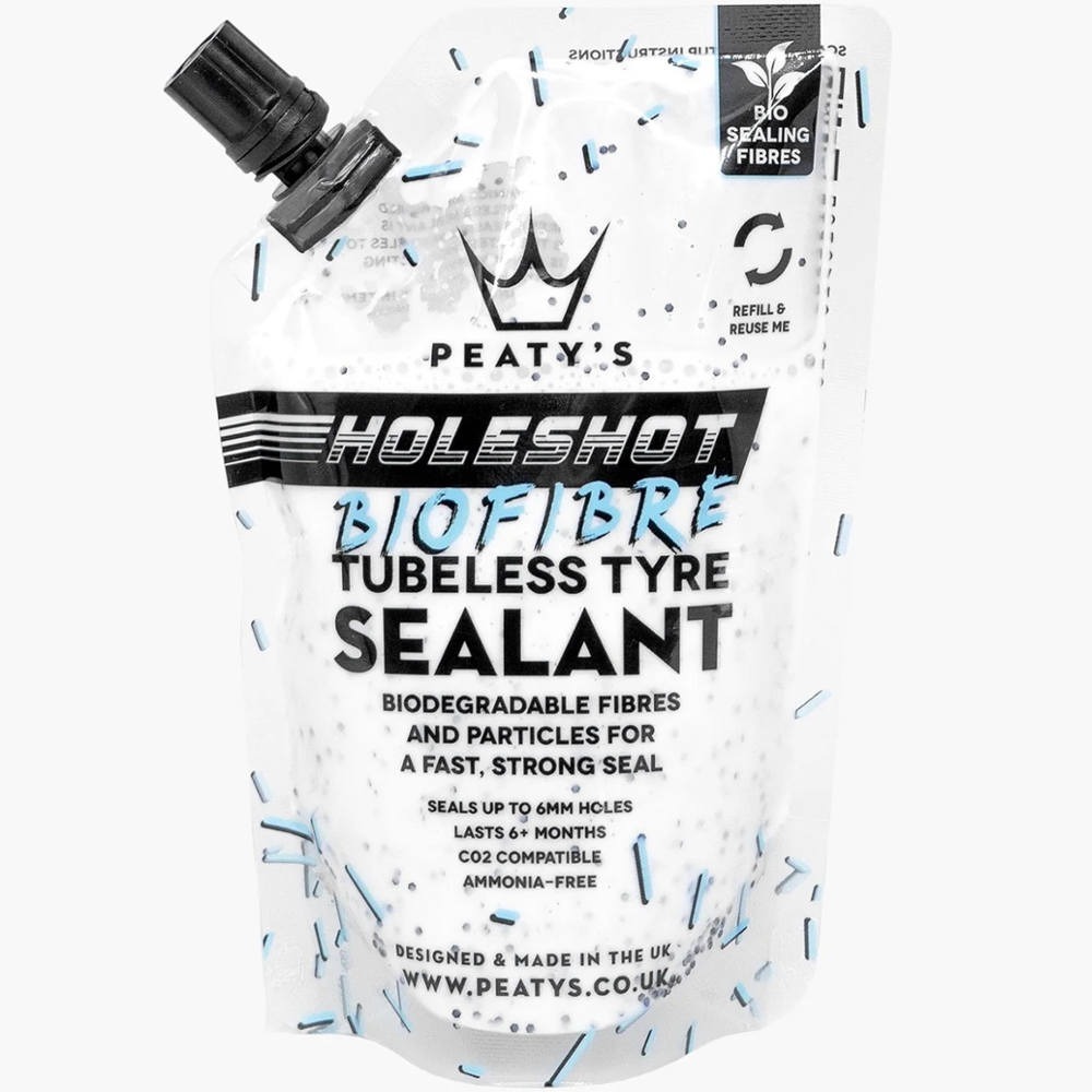 Peaty’s Holeshot Tubeless Sealant to produkt, który powstał we współpracy z najlepszymi mechanikami i zawodnikami na świecie, by sprostać najwyższym wymaganiom. Zawiera biodegradowalne włókna i cząsteczki, które w połączeniu z nowoczesnym lateksem tworzą błyskawicznie działające uszczelnienie, zabezpieczające opony przed uszkodzeniami do 6 mm. Ten uszczelniacz, wolny od amoniaku i substancji szkodliwych, jest bezpieczny dla środowiska i łatwy do wypłukania, co czyni go idealnym wyborem dla każdego, kto ceni sobie zarówno wydajność, jak i ekologię. Wybierając Peaty’s Holeshot Tubeless Sealant, zyskujesz pewność, że nawet najtrudniejsze szlaki nie staną Ci na drodze do mety.