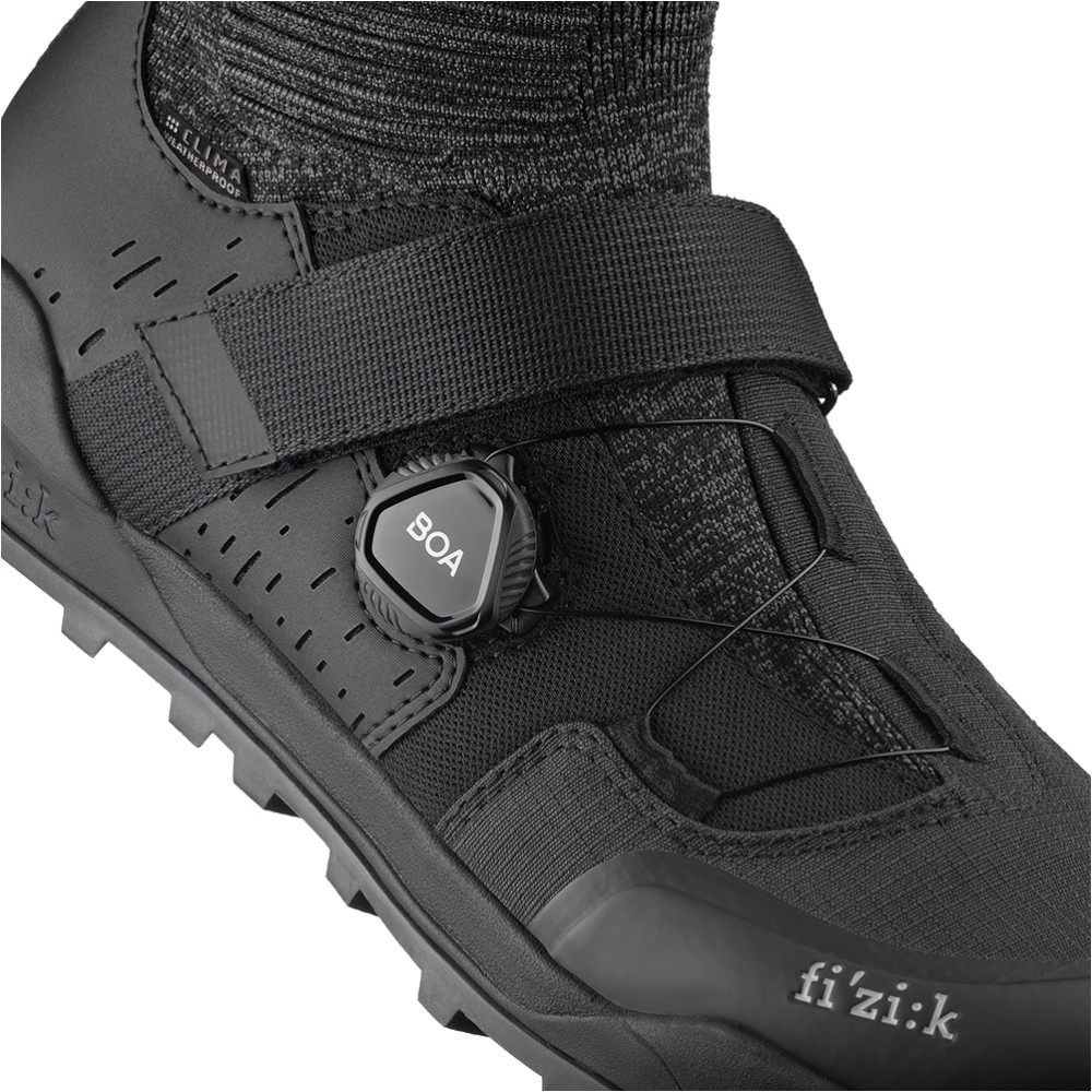 Fizik Terra Clima X2 są doskonałymi butami all-mountain na warunki przejściowe. Trwała cholewka została wykonana z odpornego na rozdarcia materiału ripstop. Newralgiczne punkty dodatkowo wzmocniono laminowaniem poliuretanem, umożliwiając agresywną jazdę bez obaw o uszkodzenia. Zintegrowana skarpeta w okolicy kostki skutecznie zabezpiecza przed wpadającym kurzem i kamykami. Wnętrze wykonano z oddychających materiałów, które oferują wysoki komfort przez wiele godzin.