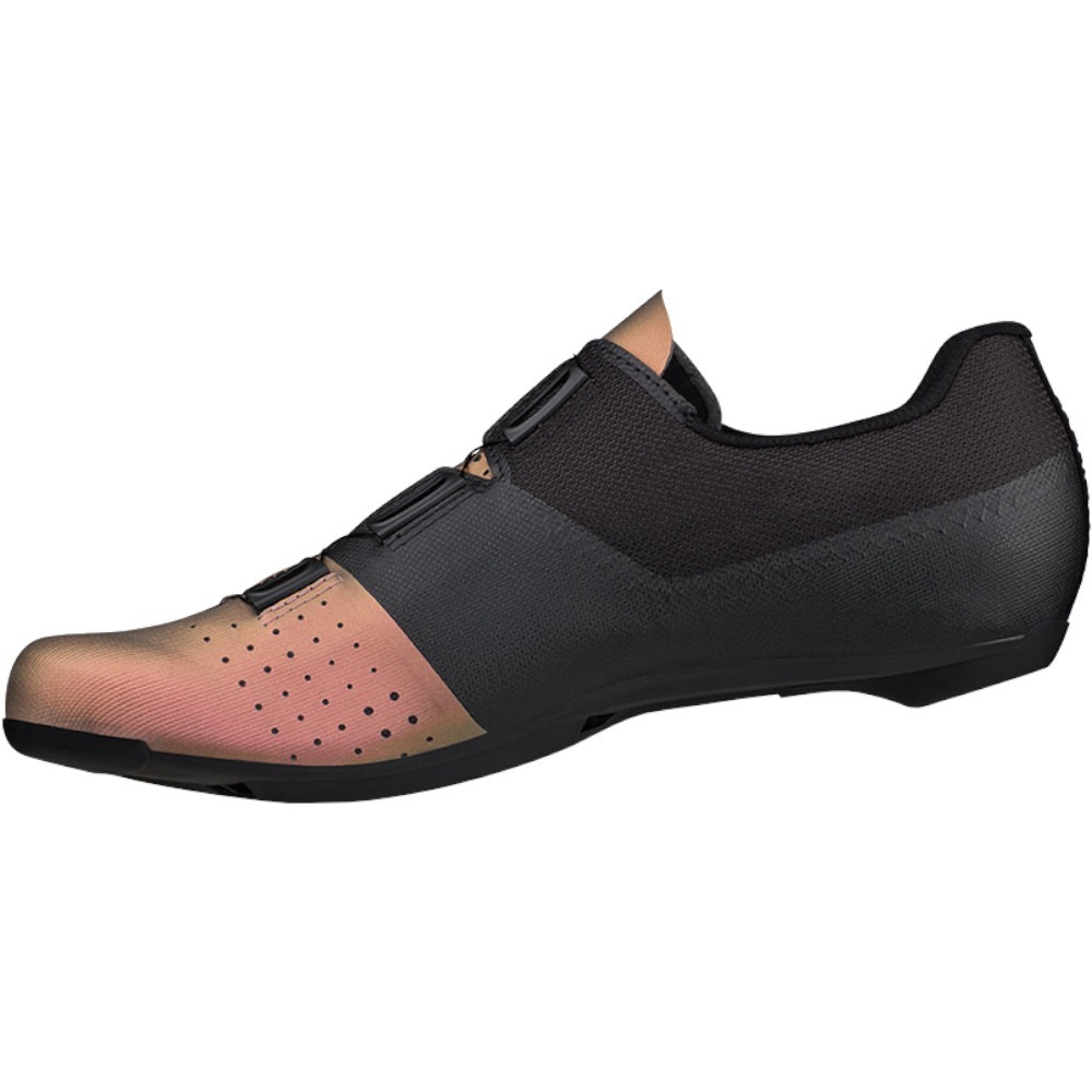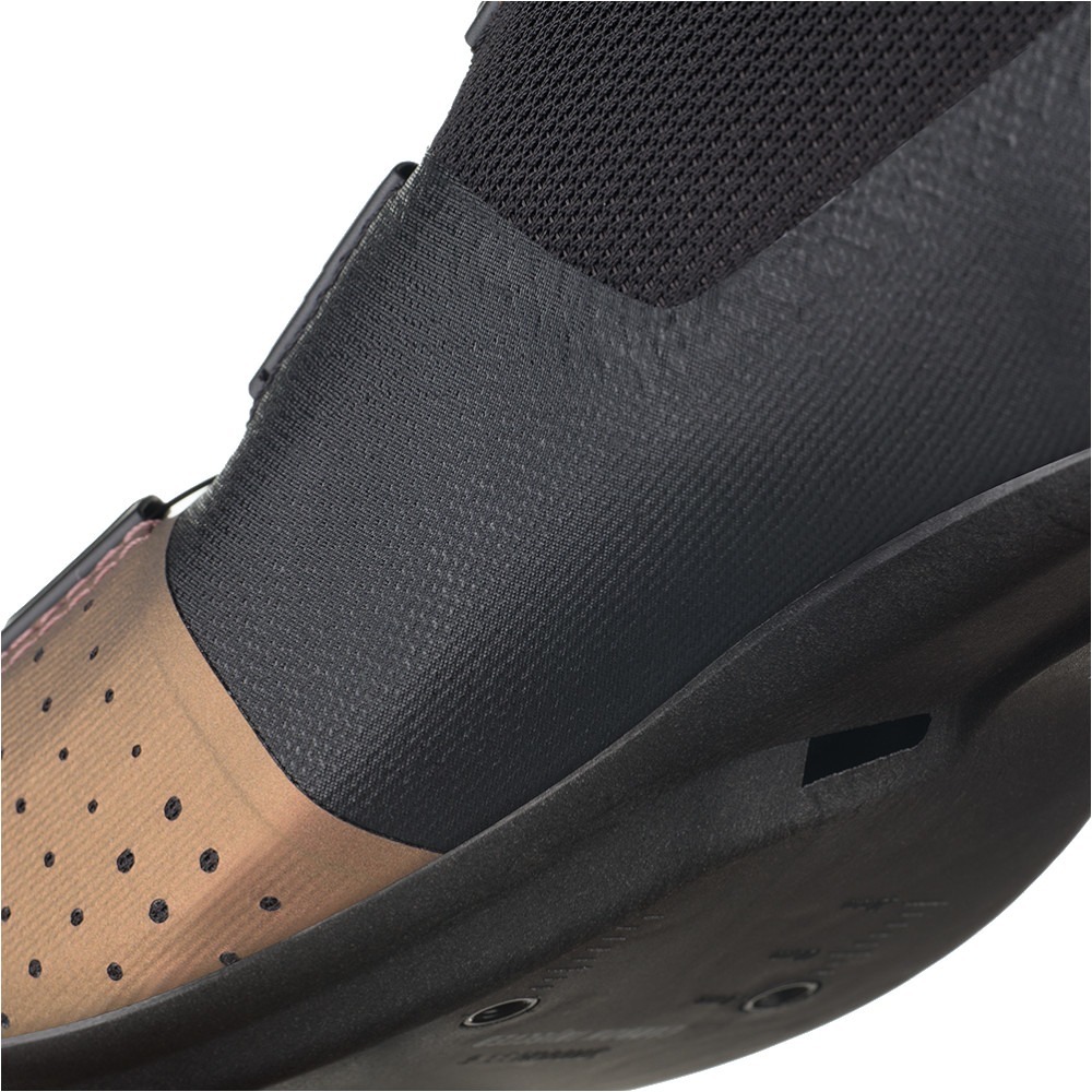 Podeszwa została wzmocniona carbonem dla optymalnej sztywności do efektywnego pedałowania, a przemyślane kanały wentylacyjne dbają o optymalną temperaturę stopy podczas intensywnego wysiłku. Za dopasowanie odpowiada pokrętło BOA IP1, które pozwala na pewne i stabilne zapięcie buta. Bloki zostały przesunięte w stronę pięty dla zmniejszenia ucisku kolan oraz bardziej efektywnego pedałowania w agresywnej pozycji. Całość dopełnia nowoczesne wykończenie przykuwające uwagę.