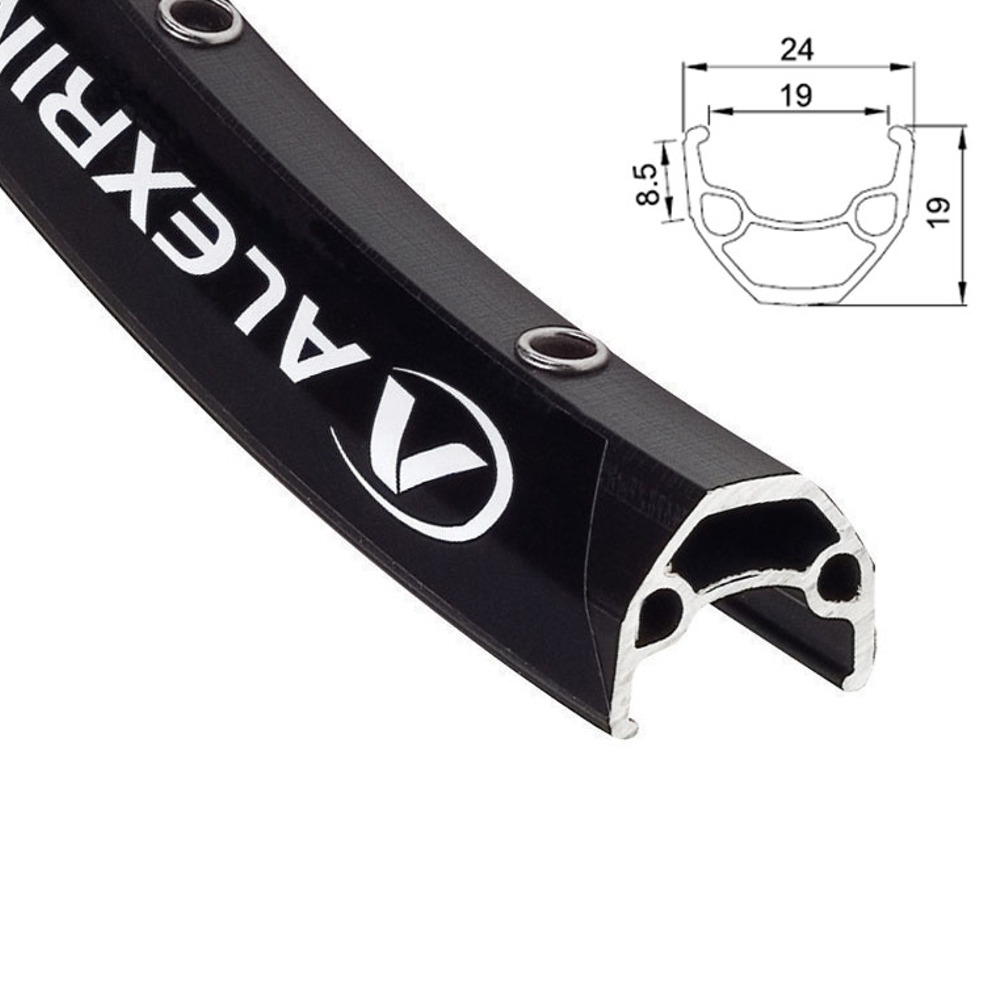 Alexrims EN24 to trzykomorowa obręcz rowerowa kompatybilna z hamulcami tarczowymi. Wykonana została z aluminium, dzięki czemu jest mocna i trwała. Przeznaczona jest do rowerów All Mountain i Marathon. Obręcz Alexrims EN24 wyróżnia się dobrym stosunkiem wagi do wytrzymałości. Kapslowane otwory na szprychy umożliwiają zbudowanie mocniejszego koła.