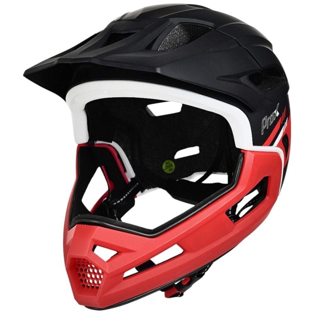 ProX Cage II to solidny kask rowerowy typu fullface, stworzony z myślą o wymagających trasach MTB. Wykonany w technologii In-Mould z materiałów PC + EPS, waży zaledwie 480 ± 10 g, oferując pełną ochronę głowy bez zbędnego obciążenia. Dwa zakresy regulacji rozmiaru – 55-60 cm i 57-62 cm – pozwalają na precyzyjne dopasowanie.