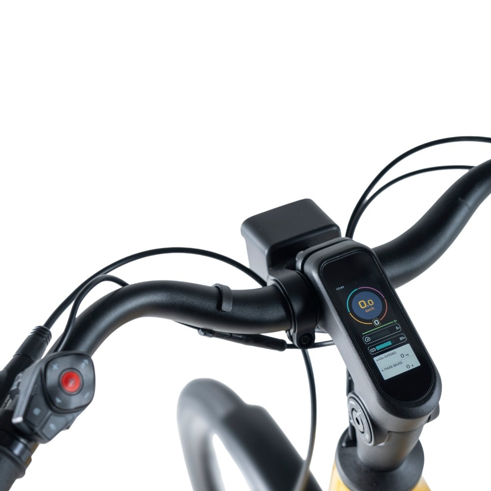 Szkielet konstrukcyjny roweru elektrycznego Neon Bikes Glow stanowi aluminiowa rama – lekka, a jednocześnie odporna na uszkodzenia mechaniczne i czynniki atmosferyczne. Jej geometria to tzw. monotube, co oznacza, że e-bike nie ma górnej rury – dzięki temu łatwiej się z niego zsiada – dodatkowo, tego typu konstrukcja obniża środek ciężkości, w efekcie rower elektryczny Neon Bikes Glow jest stabilniejszy. Warto zwrócić uwagę na zintegrowany z mostkiem kierownicy wyświetlacz z modułem Bluetooth – zapewni Ci wygodne monitorowanie takich parametrów jak prędkość czy poziom naładowania akumulatora, a także łączność ze smartfonem.