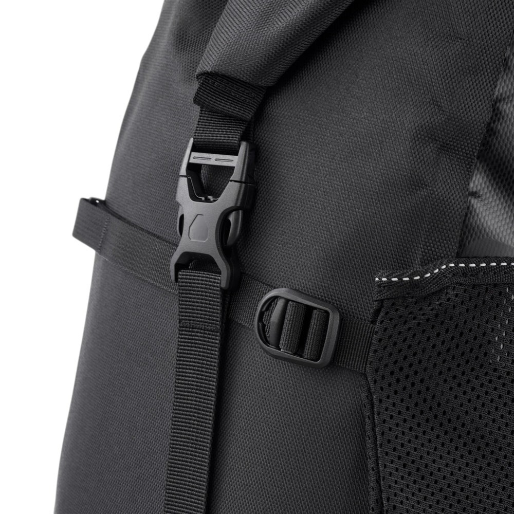 Sakwy posiadają praktyczną przednią kieszeń o pojemności 4 litrów, idealną na rzeczy, do których potrzebujesz szybkiego dostępu – warto jednak pamiętać, że kieszeń ta nie jest wodoodporna. Główna komora z zamknięciem typu roll-top chroni przewożony sprzęt przed wilgocią i zabrudzeniami.