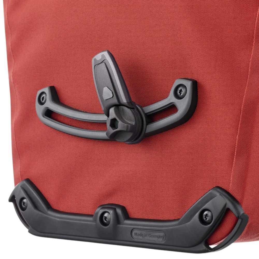 Sakwy wykonane są z wytrzymałej, wolnej od PVC tkaniny Cordura. Wodoodporne zamknięcie typu roll-top skutecznie chroni zawartość przed wilgocią i zabrudzeniami. Dzięki systemowi Quick-Lock sakwy można szybko i precyzyjnie zamocować na bagażniku rowerowym.