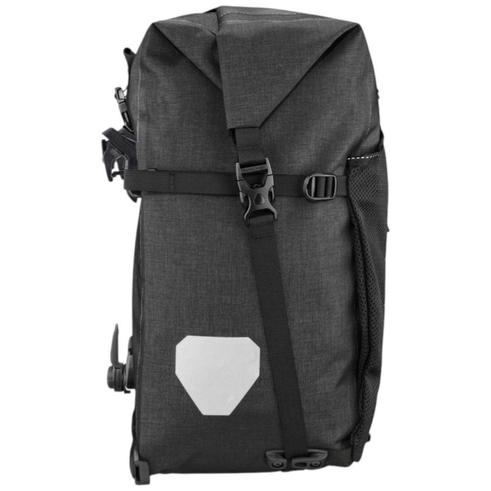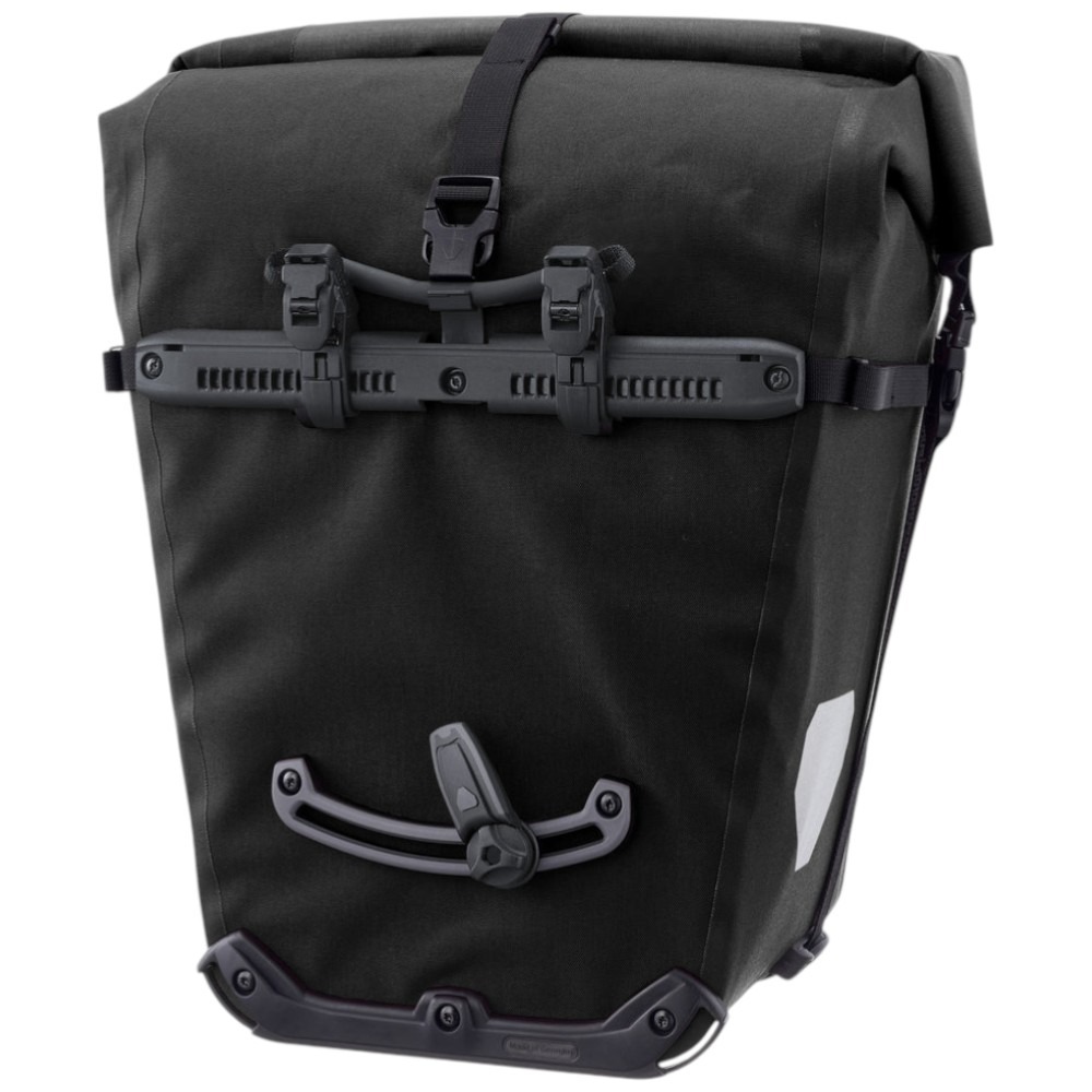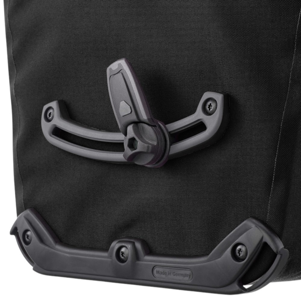 Sakwy wykonane są z wytrzymałej, wolnej od PVC tkaniny Cordura. Wodoodporne zamknięcie typu roll-top skutecznie chroni zawartość przed wilgocią i zabrudzeniami. Dzięki systemowi Quick-Lock sakwy można szybko i precyzyjnie zamocować na bagażniku rowerowym.