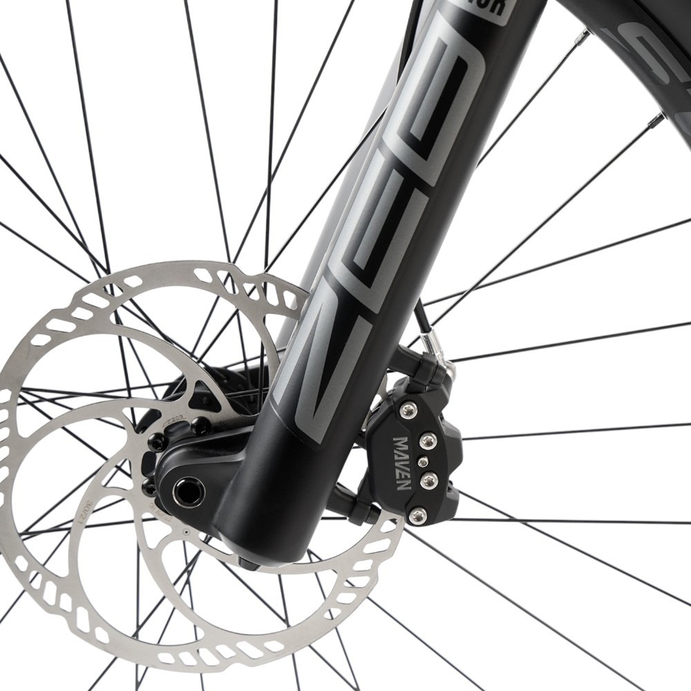 Na pokładzie roweru freeride’owego Dartmoor Thunderbird FR Pro Singlespeed znalazł się również prosty, klasyczny, lekki, a przy tym pancerny – napęd 1x1, obsługiwany przez korbę FSA Comet Heavy Duty. Z kolei za skuteczne wytracanie prędkości odpowiadają hydrauliczne hamulce tarczowe SRAM Maven Base, gwarantujące pewne działanie niezależnie od warunków pogodowych.