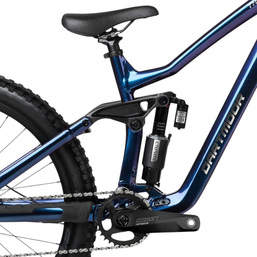 Model Dartmoor Thunderbird FR Pro Singlespeed został oparty na lekkiej, a jednocześnie wyjątkowo wytrzymałej aluminiowej ramie. Konstrukcja przeszła istotne zmiany względem wcześniejszych geometrii, dzięki czemu zyskała jeszcze większą sztywność, zwrotność i stabilność – nawet podczas wykonywania bardzo dużych skoków. Z przodu zastosowano amortyzator amerykańskiej marki – Rock Shox Zeb Select o imponującym skoku 190 mm, natomiast z tyłu pracuje damper Rock Shox Vivid Air Base oferujący 180 mm skoku. Rower w standardzie występuje w konfiguracji z mieszanymi kołami (mullet), łączącej szybkość z dużą zwrotnością, jednak rama umożliwia także montaż jednolitych kół w rozmiarze 27,5 cala.