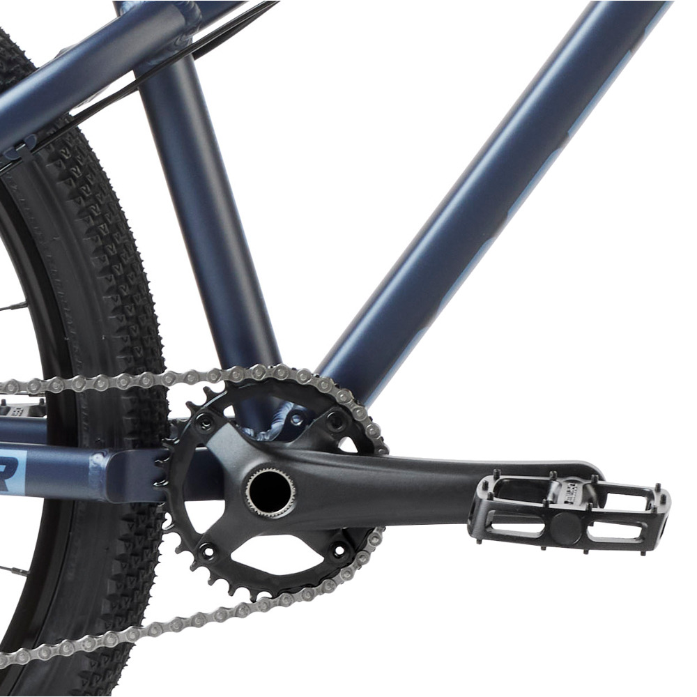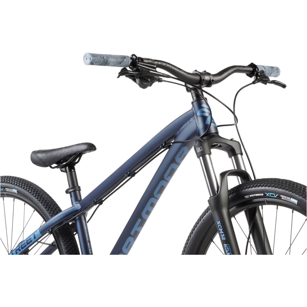 Kompaktowa geometria daje pewność prowadzenia podczas pierwszych skoków lub trików. Zastosowanie tylnej przerzutki pozwala na wygodne przemieszczanie się między kolejnymi miejscówkami. Solidna aluminiowa rama została wyposażona w widelec Suntour XCM32 DS ze sztywną osią 15 mm. Bezpieczne i pewne zatrzymanie roweru odbywa się za pomocą hydraulicznych hamulców z tarczami w rozmiarze 160 mm. Wytrzymałe koła są odporne na uderzenia, a piasty na łożyskach maszynowych gwarantują bezawaryjną pracę i minimum oporu. Uniwersalna opona Vee Tire XCV dobrze sprawdzi się w streetowych warunkach.