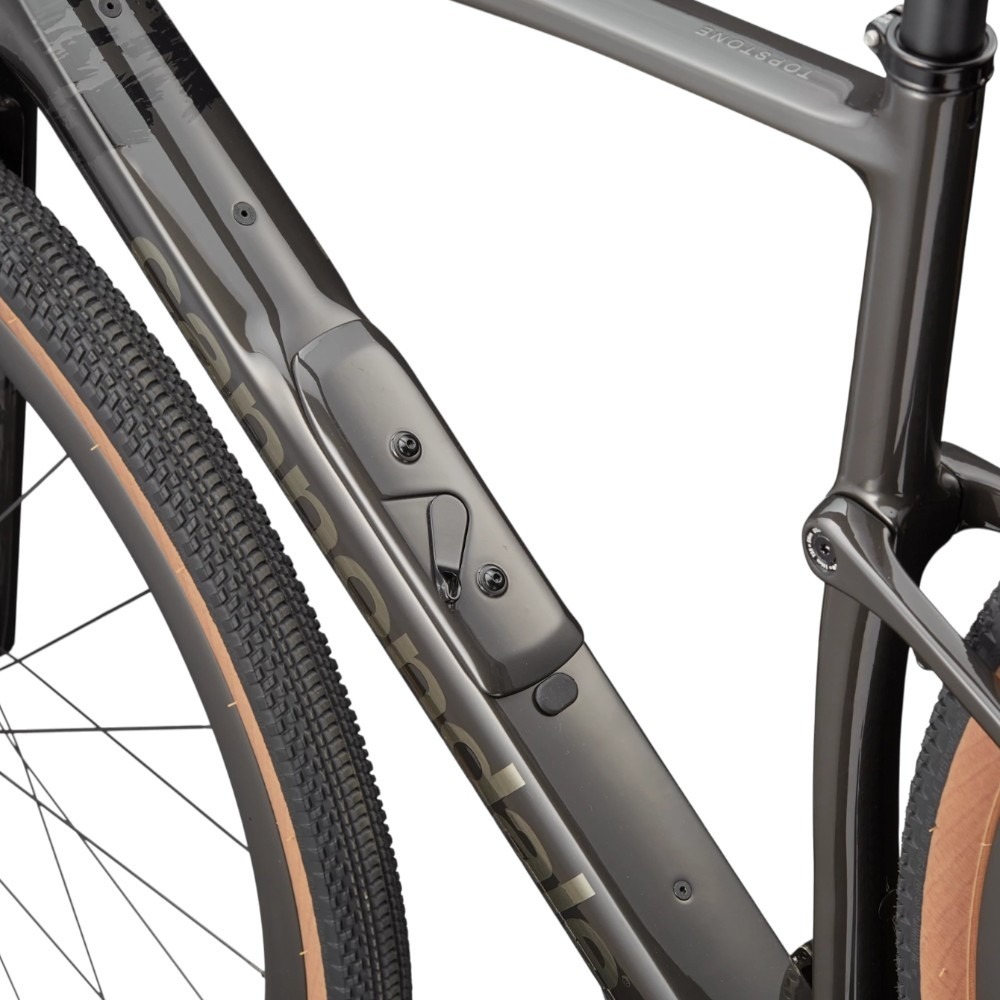 Cannondale Topstone Carbon 1 AXS opiera się na ramie wykonanej w całości z włókna węglowego. Materiał ten stanowi idealne połączenie wysokiej wytrzymałości i niskiej masy. Rama współpracuje z lekkim tylnym zawieszeniem Kingpin, zaprojektowanym z myślą o zwiększeniu komfortu użytkownika – zwłaszcza podczas pokonywania dłuższych tras. Co ważne, konstrukcja wyróżnia się także dużą uniwersalnością. Liczne punkty montażowe na akcesoria sprawiają, że rower świetnie sprawdzi się podczas wypraw bikepackingowych.