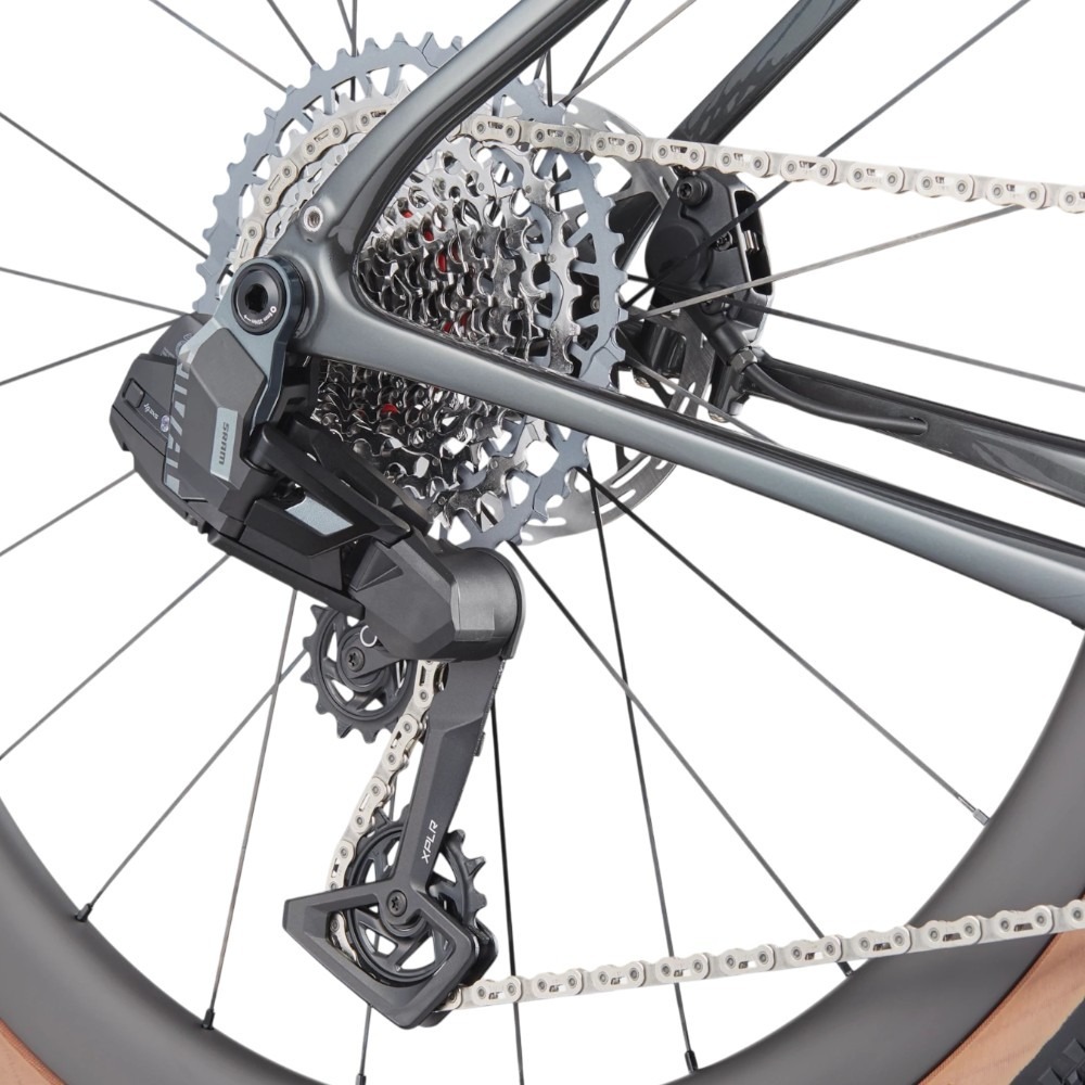 Model korzysta z osprzętu amerykańskiej produkcji – SRAM Rival AXS. 13-rzędowa, precyzyjnie działająca przerzutka elektroniczna bez problemu radzi sobie w trudniejszym terenie. Należy ona do linii XPLR, opracowanej specjalnie z myślą o rowerach gravelowych – rozwiązania te bazują na doświadczeniach marek takich jak SRAM, Rock Shox czy Zipp. Szeroki zakres przełożeń z jednym blatem umożliwia rozwijanie wysokich prędkości na zjazdach, a jednocześnie ułatwia pokonywanie stromych podjazdów.