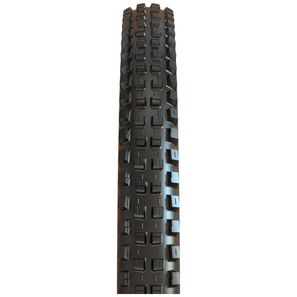 Centralne wypustki w kształcie niskoprofilowych kolców są odpowiednio rozstawione, co gwarantuje stabilność i zapobiega poślizgom na suchych szlakach. Duże, solidnie podparte klocki boczne dbają o pewność prowadzenia w ostrych zakrętach, a otwarta rzeźba bieżnika skutecznie minimalizuje gromadzenie się błota, nawet w najbardziej wymagających warunkach.