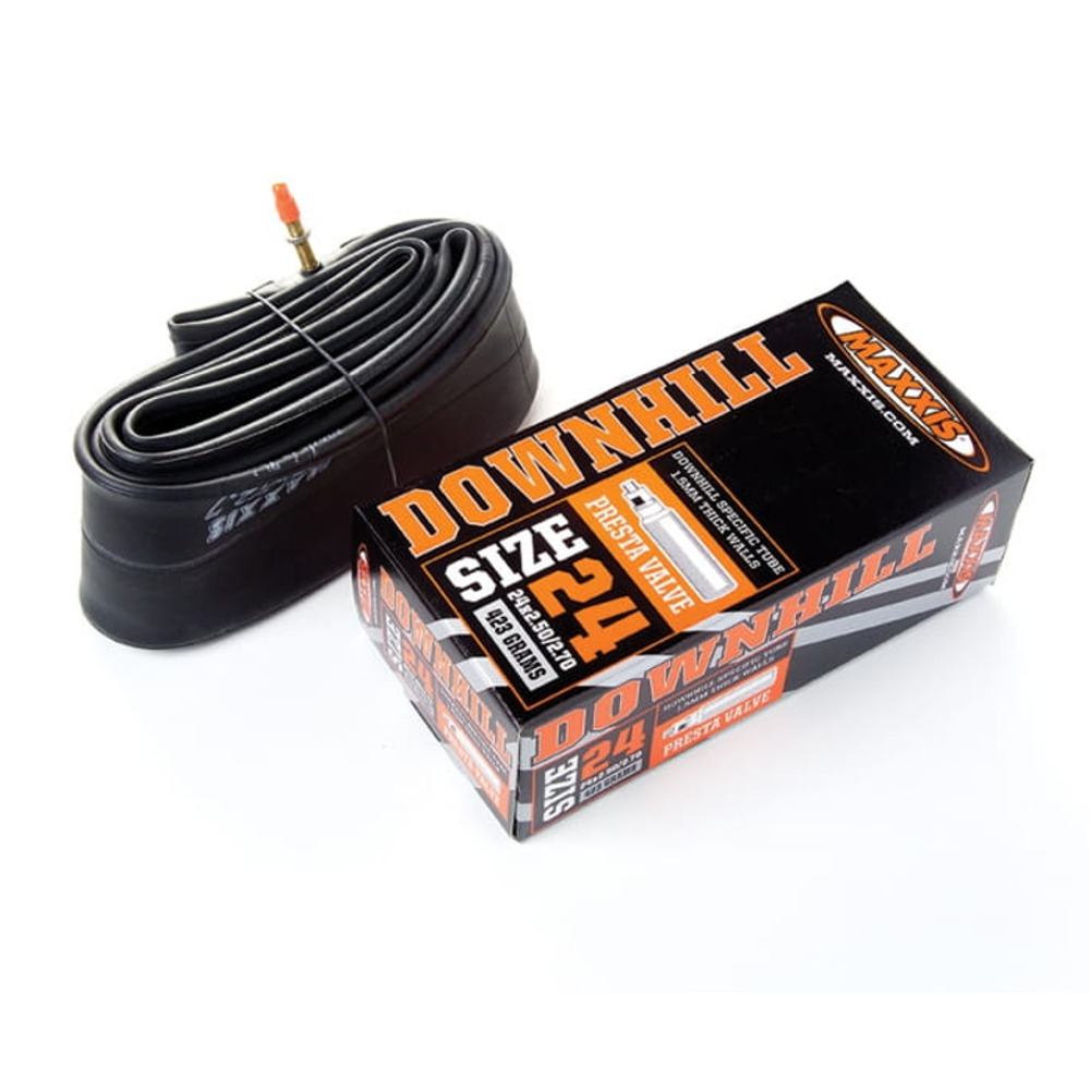 Dętka rowerowa Maxxis Downhill, świetnie sprawdzi się wszędzie tam, gdzie teren jest wymagający. Jest bardzo wytrzymała i doskonale sprawdzi się przy downhill'u. Dętka Maxxis Downhill dobrze utrzymuje ciśnienie. Dzięki temu nie zawiedzie Cię przy zjeździe i pozwoli zachować świetną przyczepność. Dętka rowerowa Maxxis Downhill wyposażona została w wentyl typu presta, który cieszy się obecnie dużą popularnością.