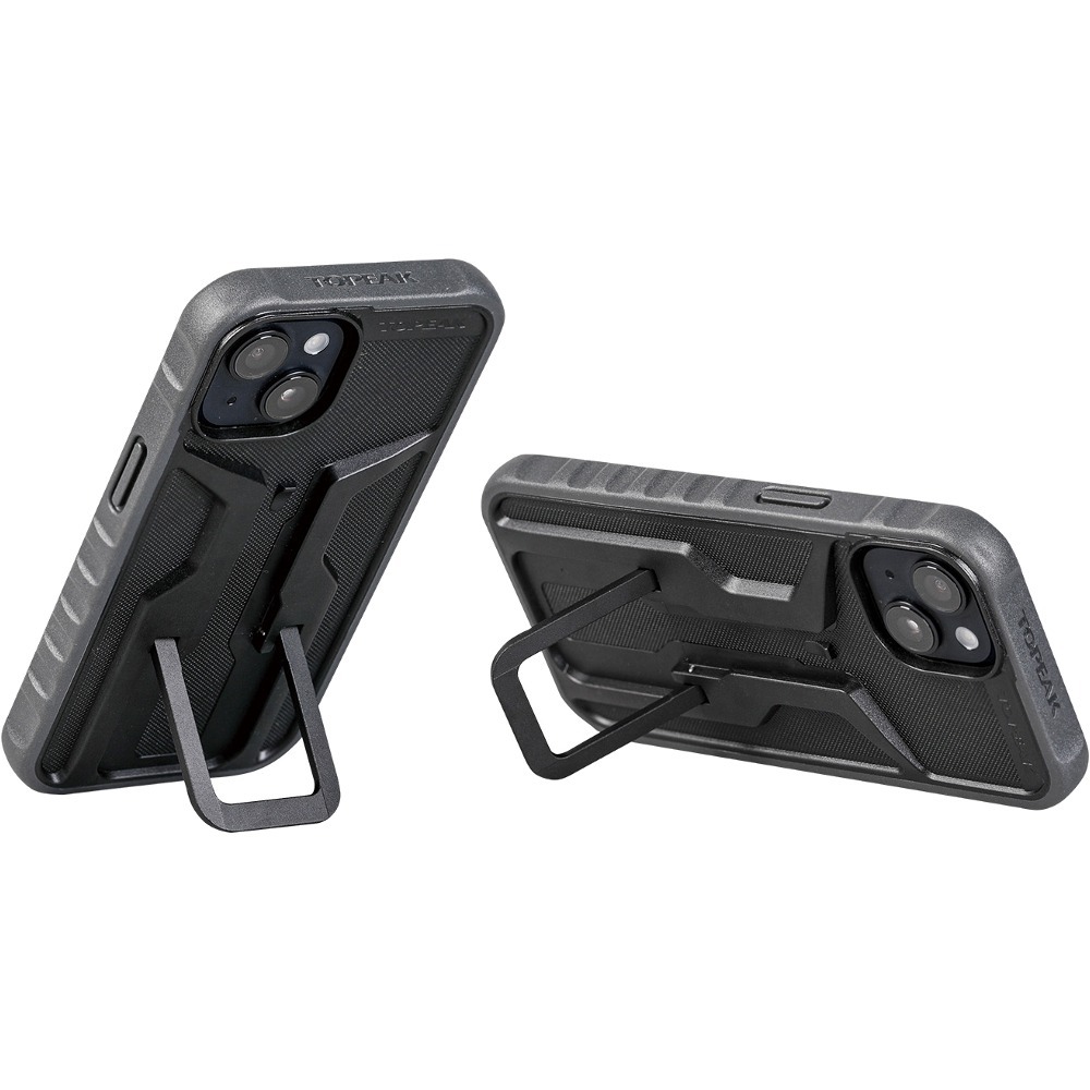 Etui na telefon Topeak Ridecase wykonane w wysokiej jakości gumy i polimeru. Egzoszkielet o podwójnej gęstości zapewni ochronę przed uderzeniami i wstrząsami. Regulowana aluminiowa podstawka pozwala na korzystanie z telefonu w pionie jak i w poziomie. Dzięki Topeak Ridecase telefon jest odporny na zarysowania i zapewnia bezpieczny chwyt. Trzymając telefon w etui możemy ładować telefon za pomocą złącza Lightning, jednak aby korzystać z ładowania indukcyjnego musimy wyciągnąć telefonu z etui.