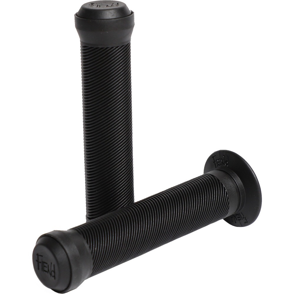 Gripy Team formowane są z gumy Krayton o średniej twardości z ukośnym wzorem zapewniającym komfort i dobrą przyczepność. Wraz z gripami dostajemy nylonowe bar endy czyli zaślepienia końcówek kierownicy, które są wysoce rekomendowane do montażu ze względów bezpieczeństwa w szczególności w rowerach wyczynowych. Team są na tyle długie, że przy ewolucjach wymagających obracania lub puszczania kierownicy, ponowne ułożenie rąk na gripach nie powinno stanowić problemu.