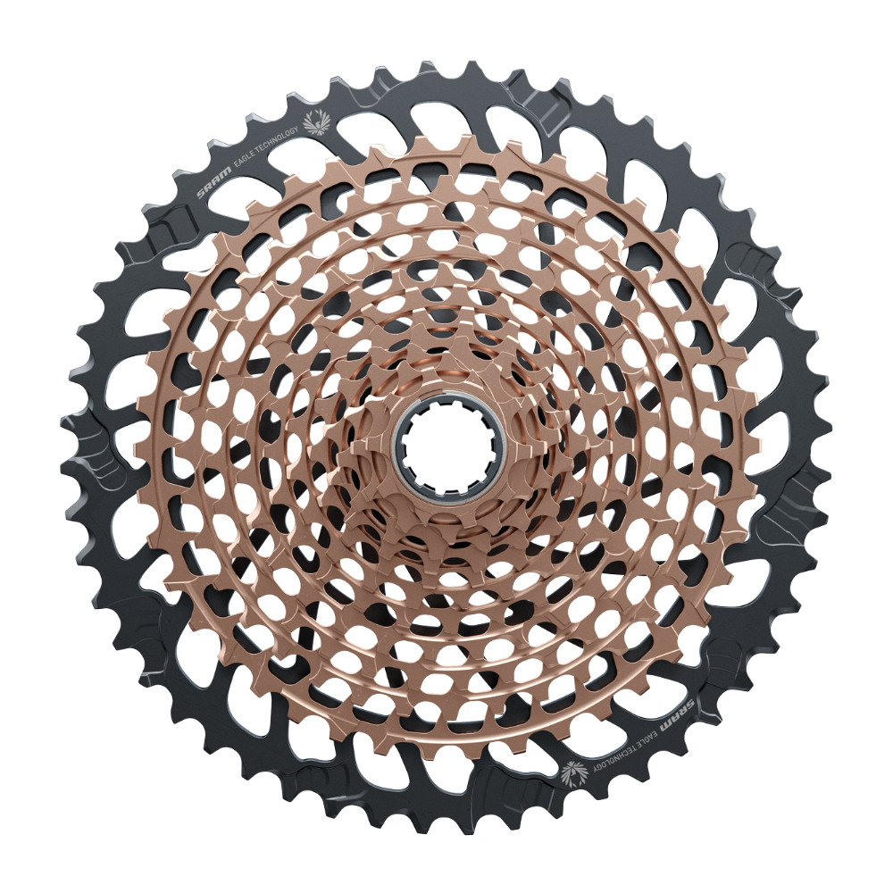 Kaseta SRAM XG-1299 XX1 Eagle przygotowana została przez specjalistów dla prawdziwych zawodowców i osób, dla których MTB jest życiową pasją. To sprzęt, który nie zawiedzie w najtrudniejszych momentach, a dzięki zwiększonemu do 520% zasięgowi pozwala na osiąganie znacznie wyższych prędkości maksymalnych, niż w przypadku innych kaset. Kaseta rowerowa SRAM XG-1299 XX1 Eagle jest wstecznie kompatybilna, dzięki czemu nie musisz wymieniać wszystkich komponentów, żeby zmodernizować swój rower. Doskonale współpracuje również z zaawansowanymi, elektronicznymi układami SRAM XX1 Eagle AXS. Kaseta do roweru SRAM XG-1299 XX1 Eagle jest kompatybilna z systemem SRAM XD i funkcjonuje w technologii X-Dome, która zapewnia jej wysoką wytrzymałość, niską wagę i szybkie oczyszczanie się z zanieczyszczeń. Warto też zwrócić uwagę na atrakcyjny design, który jest nie tylko stylowy, ale również unikalny.