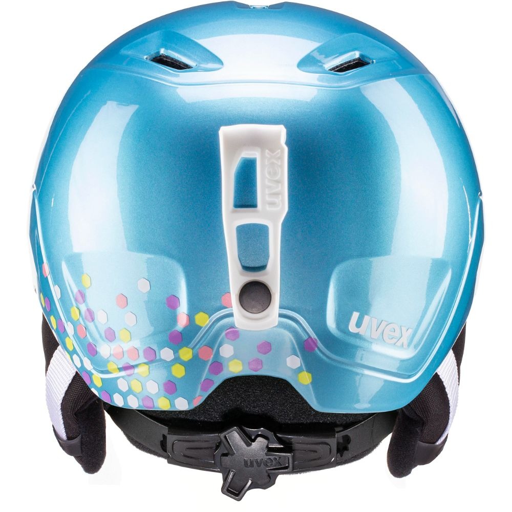 Uvex Heyya to kask przeznaczony dla najmłodszych narciarzy. Model ten został wykonany w innowacyjnej technologii Inmould, dzięki której konstrukcja kasku jest niezwykle lekka, ale jednocześnie bardzo stabilna. Zastosowany system IAS umożliwia regulację szerokości kasku, a system FAS pozwala dopasować długość mocujących go pasków. Z kolei blokujący zamek Monomatic zapobiega przypadkowemu odpięciu kasku lub przekręceniu go podczas upadku. Kask posiada system wentylacji, który zapewnia odpowiedni przepływ powietrza wewnątrz kasku.