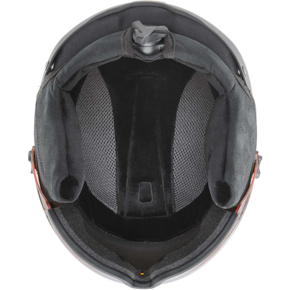 Kask narciarski Uvex Hlmt 600 Visor to model wyposażony w blokujący zamek Monomatic, który zapobiega przypadkowemu odpięciu kasku lub przekręceniu podczas upadku. Niezwykle wytrzymała konstrukcja typu Hardshell wraz z pochłaniającą wstrząsy warstwą EPS gwarantują niezbędną ochronę głowy. System 3D IAS pozwala bardzo dobrze dopasować kask pod względem szerokości oraz głębokości osadzenia. System ten jest niezwykle prosty w obsłudze i można korzystać z niego bez konieczności uprzedniego zdejmowania rękawic. Zamykany system wentylacji umożliwia utrzymanie optymalnej temperatury wewnątrz kasku - odpowiedniego chłodzenia lub utrzymywania ciepła w zależności od temperatury na stoku. Uvex Hlmt 600 Visor został także wyposażony w wyjmowaną wyściółkę o właściwościach antyalergicznych. Ponadto szyba, w którą został wyposażony kask, zapewnia skuteczną ochronę przed parowaniem.