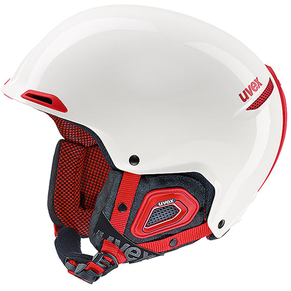 JAKK+ to innowacyjny i wyjątkowo lekki kask zaprojektowany przez markę Uvex. Model ten bardzo wyróżnia się dzięki zastosowaniu technologii Octo+. Charakterystyczne elastyczne "macki" komfortowo oplatają głowę, zapewniając idealne dopasowanie do jej kształtu. Kask został wykonany z wysokiej jakości termoplastycznego tworzywa. Materiał ten jest bardzo wytrzymały, nawet w skrajnie niskich temperaturach. W połączeniu z wewnętrzną pianką EPS doskonale amortyzuje wszelkie wstrząsy i uderzenia. Zastosowany system wentylacji zapewnia optymalną cyrkulację powietrza, redukując ciepło wewnątrz kasku. Kanały wentylacyjne zostały zaprojektowane tak, aby wpuszczały zimne powietrze pod powierzchnię skorupy i odprowadzały ciepłe powietrze na zewnątrz. Kask został wyposażony w blokujący zamek Monomatic, który zapobiega przypadkowemu odpięciu kasku lub przekręceniu w razie upadku. Zastosowany system dopasowania FAS umożliwia wyregulowanie długości pasków przy kasku tak, by odpowiednio mocno leżał na głowie i nie przesunął się nawet podczas gwałtownego uderzenia. Z tyłu kasku umieszczono specjalne zapięcie, które zabezpiecza gogle przed ześlizgnięciem się i trzyma je stabilnie na kasku. Ponadto Uvex JAKK+ jest kompatybilny z systemem audio - w nausznikach znajdują się bowiem specjalne otwory na słuchawki.